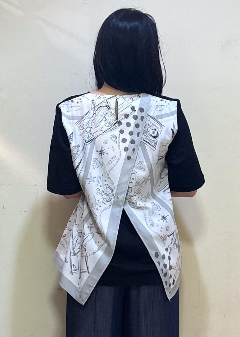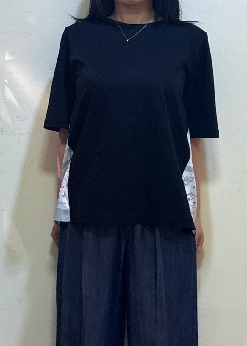【YUKO SAEKI for ROPE'・コラボ】スカーフ柄プリント Aラインカットソー