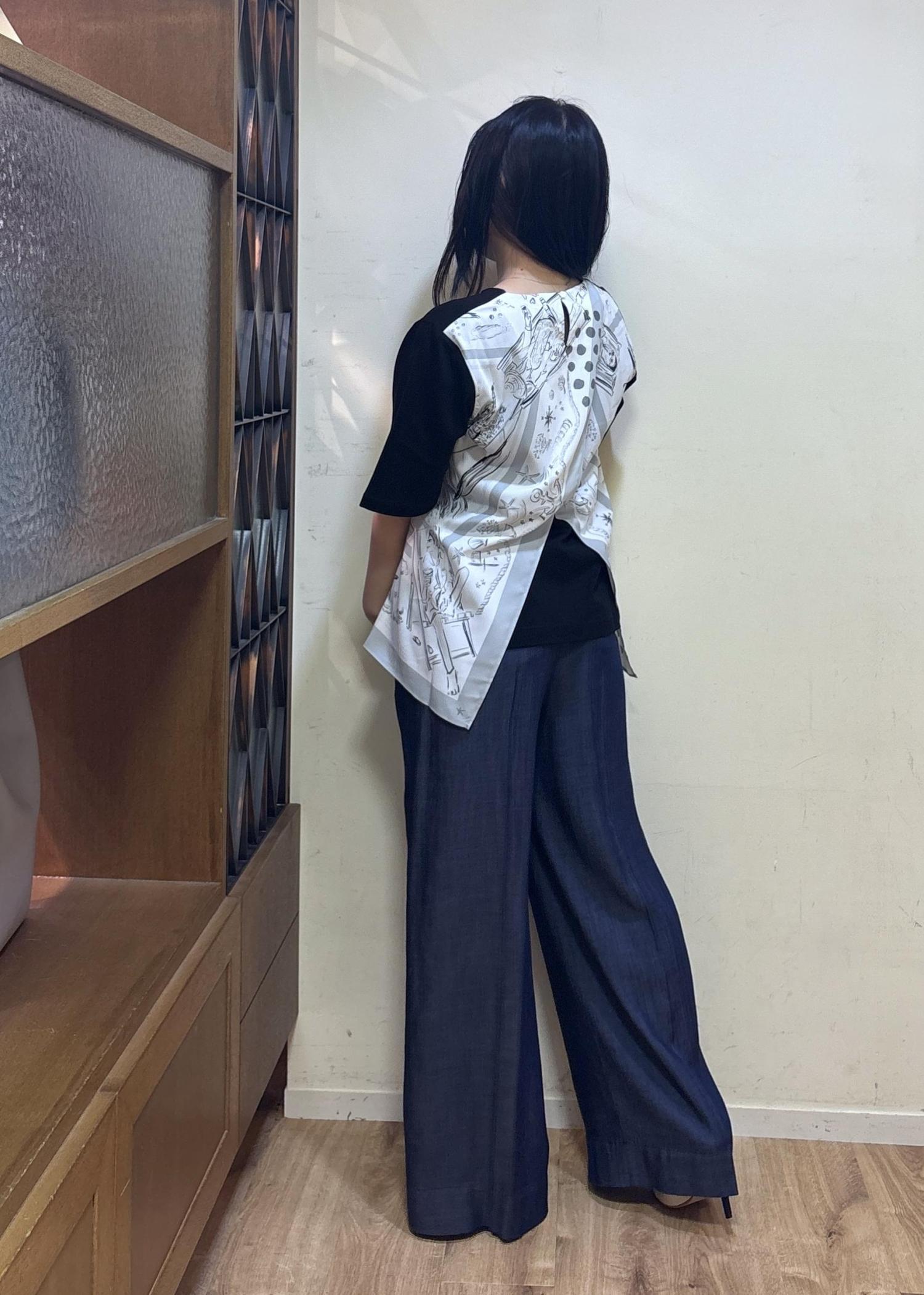 アーティスト佐伯ゆう子さんとのコラボレーションで、ROPE'のために描き下ろされたスカーフ柄プリントカットソーです。
