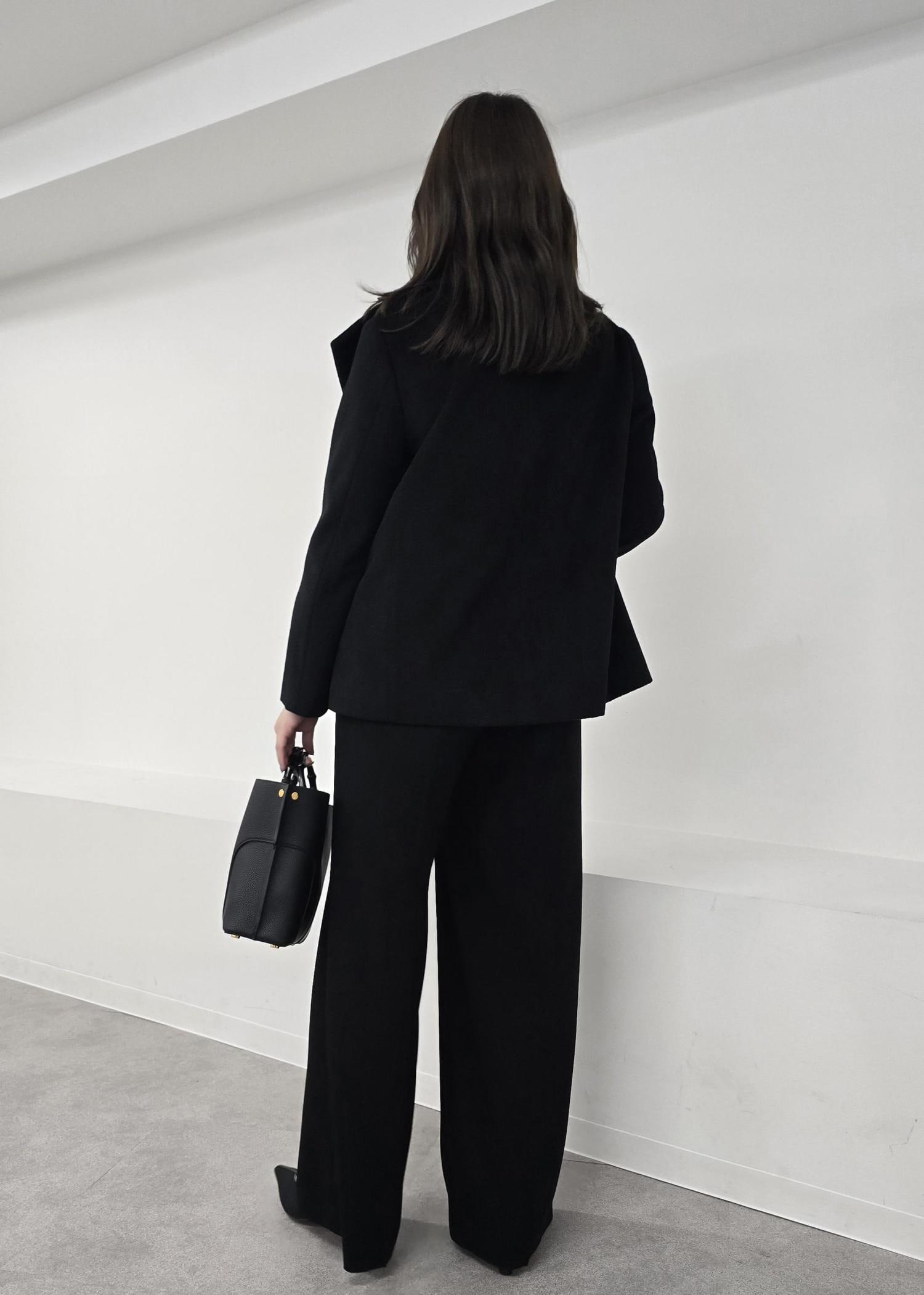 ROPÉ【洗える・カセット服】ライトトリアセイージーワイドパンツ/お仕事・通勤・セットアップ対応ブラック / 38¥25,300レビュー着丈は地面につかないくらいの丈感です。(ウエスト位置を腰上で着た場合)
