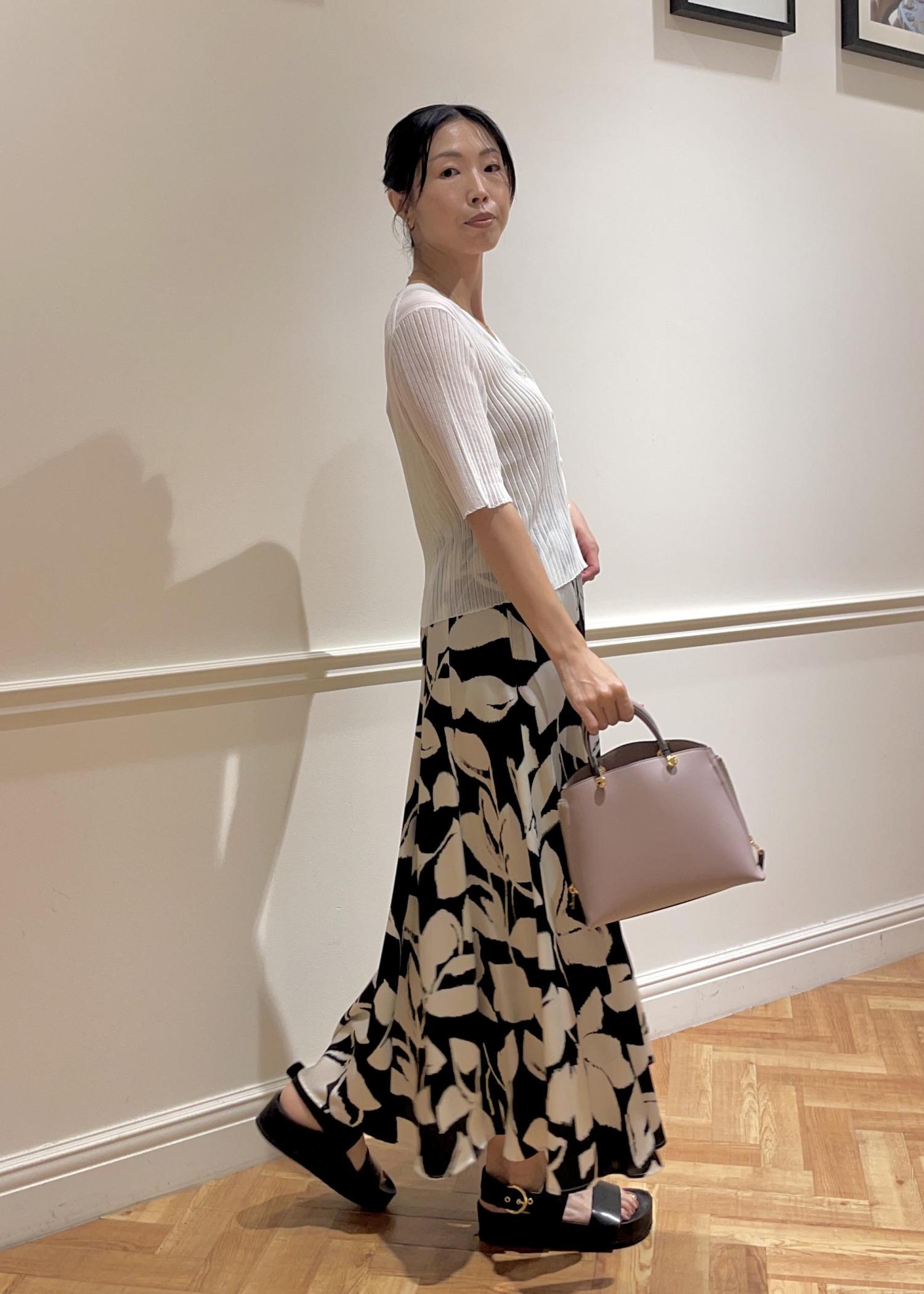 ウエストはゴムなので楽ですが、スッキリと上品に着こなして頂けるフレアシルエットです。 -
