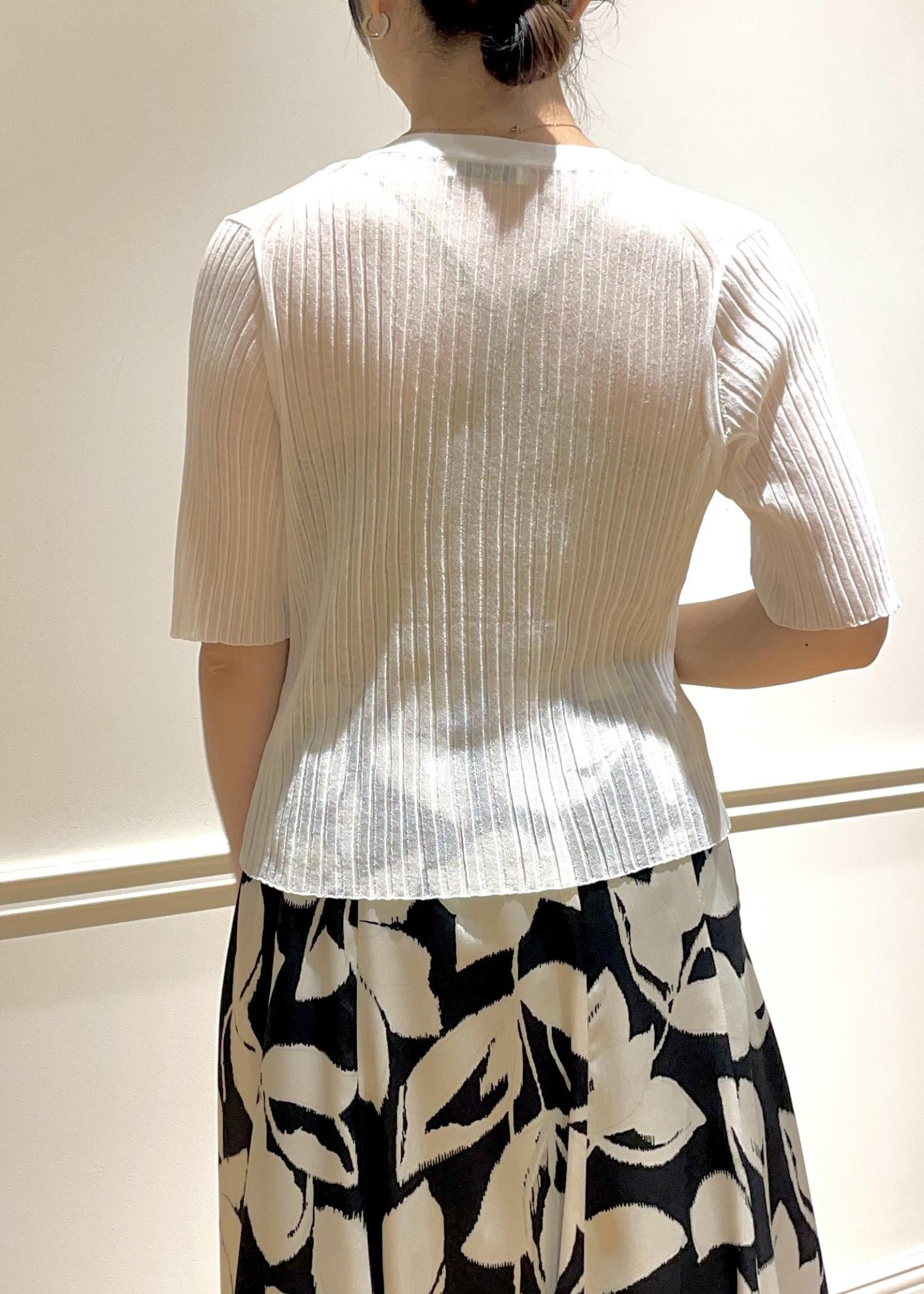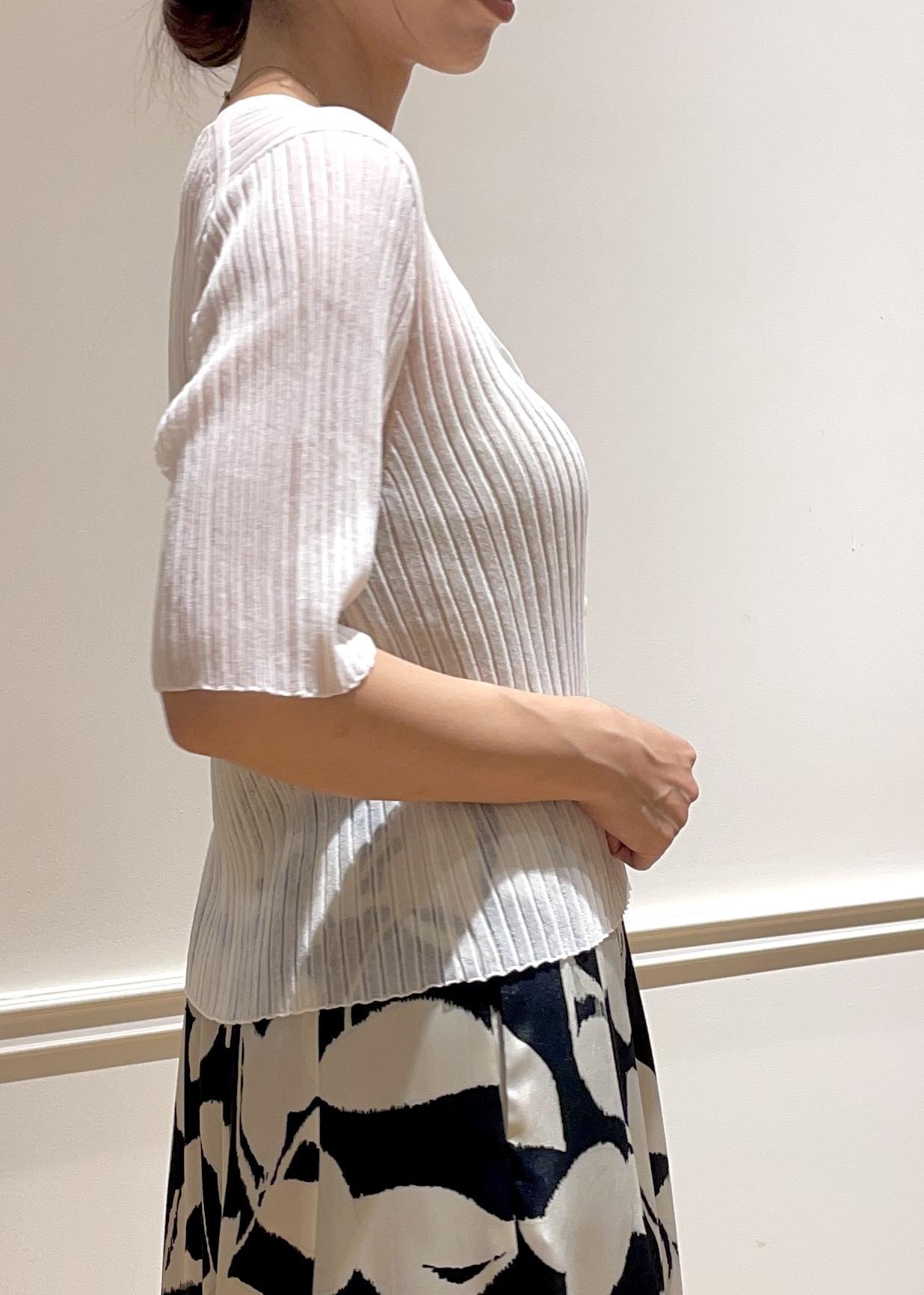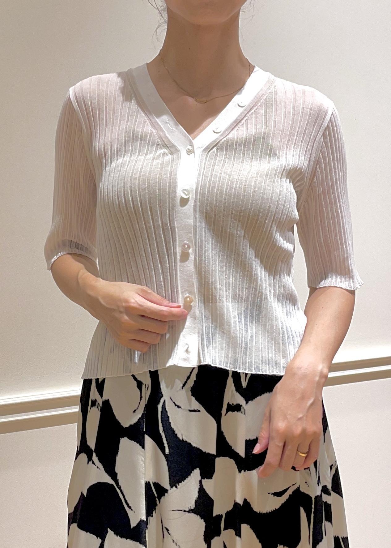 アウトレットROPÉシアーリブカーディガン/洗えるホワイト / F¥13,090レビューシアーリブが涼しげで上品なハーフスリーブカーディガン。