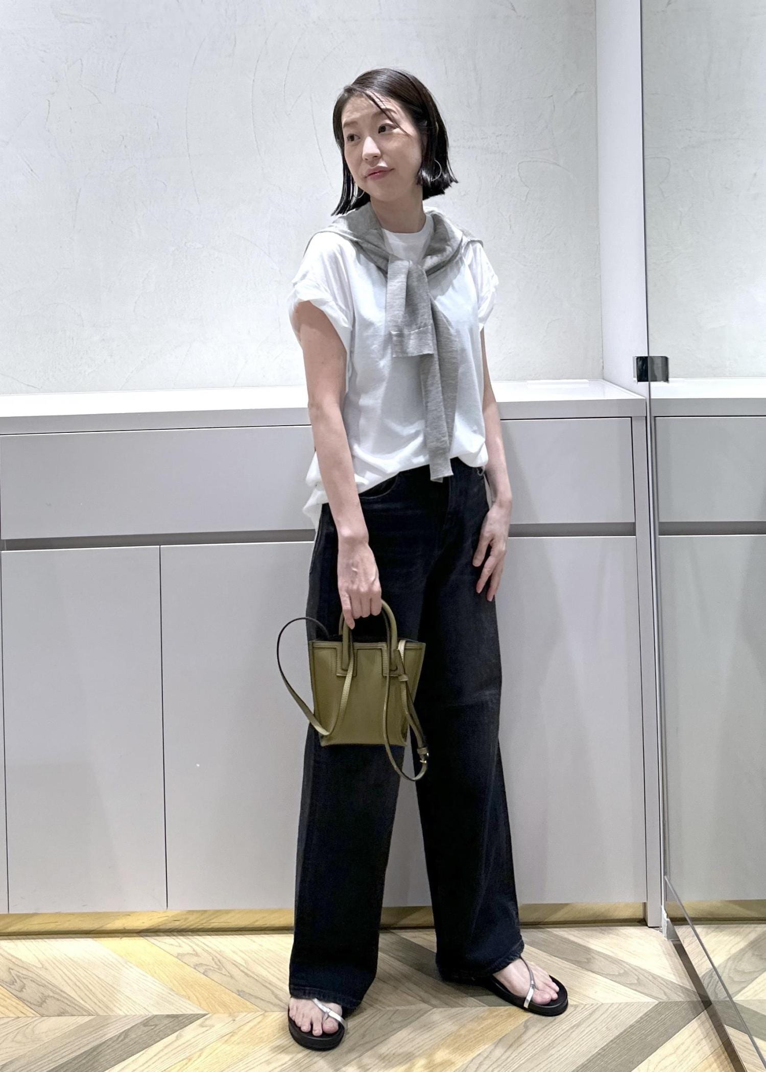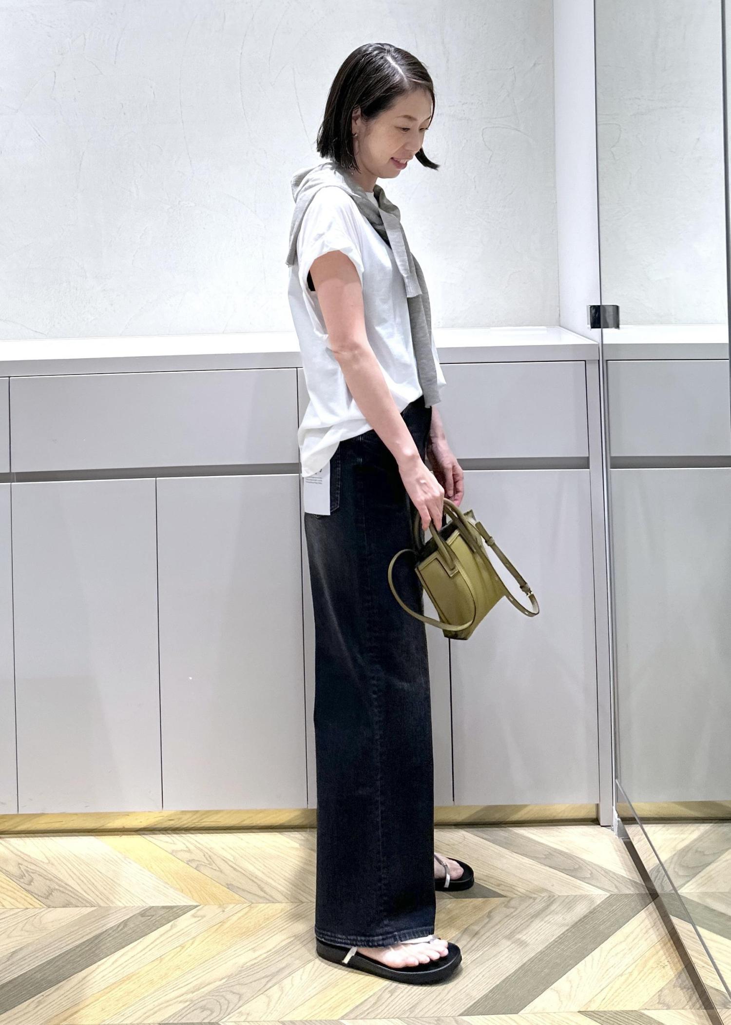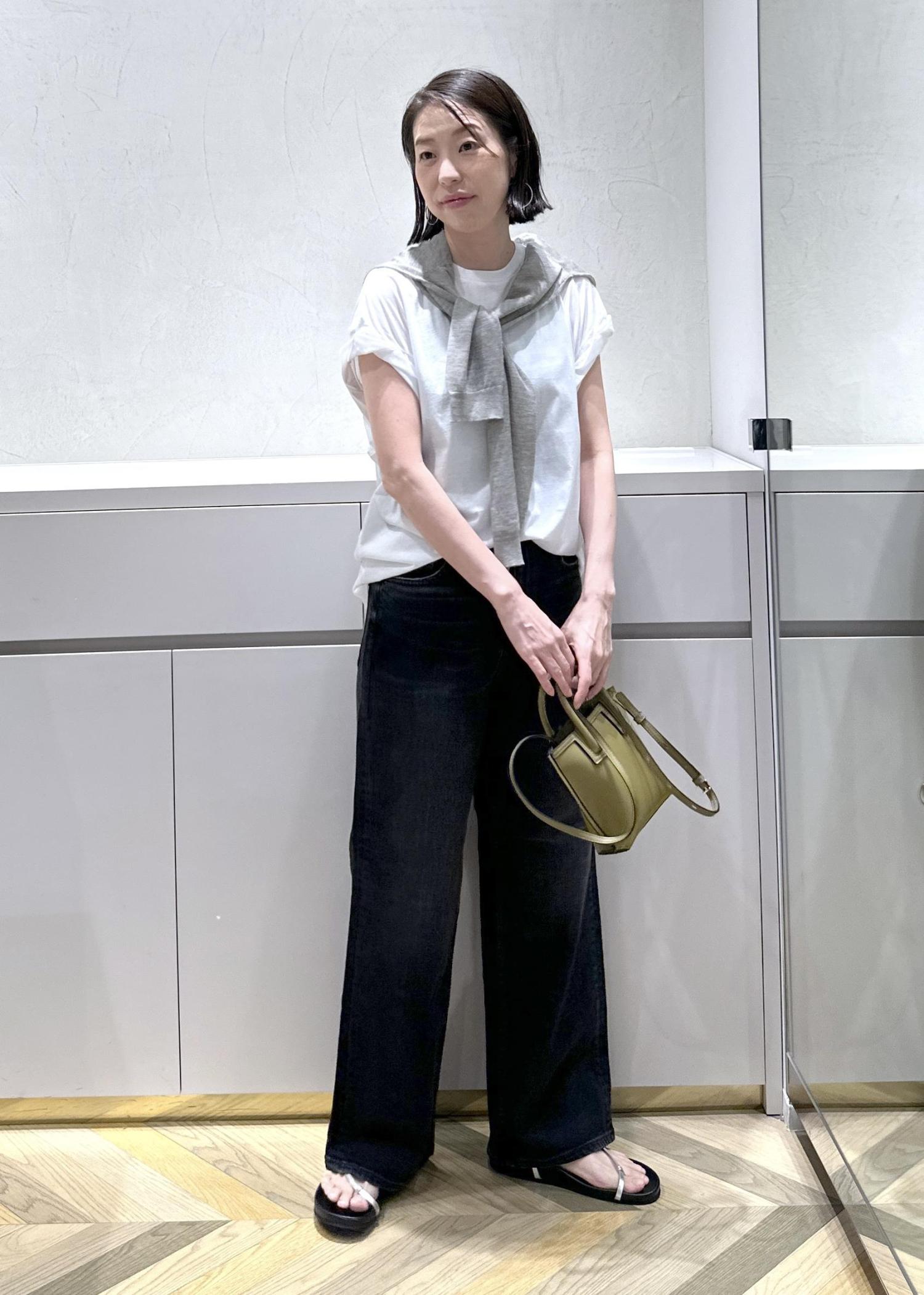 細めのベルトが華奢に見せてくれて、カジュアルになりすぎないので、綺麗目にもお召しいただけると思います。