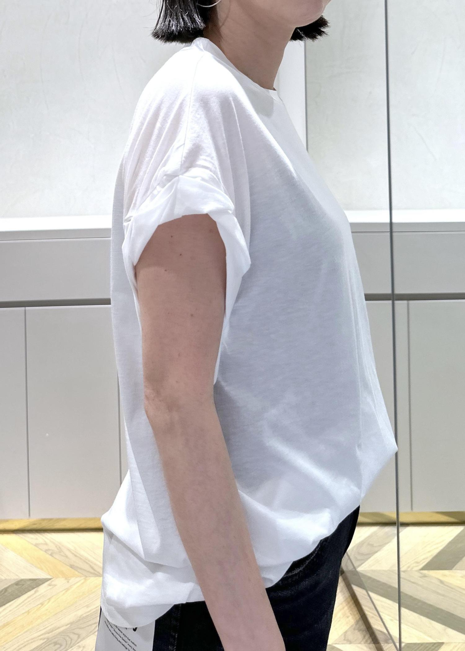 アウトレットROPÉツイストフレンチスリーブTシャツホワイト / F¥5,225レビュー着用したホワイトは透け感があるので、見えても良いインナーの着用は必須です。