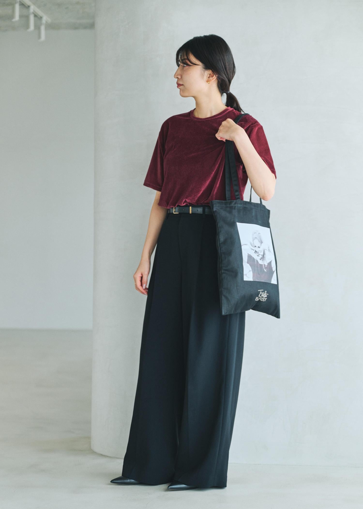 やや透け感のあるベロア生地でTシャツ感覚で軽く着られます。
