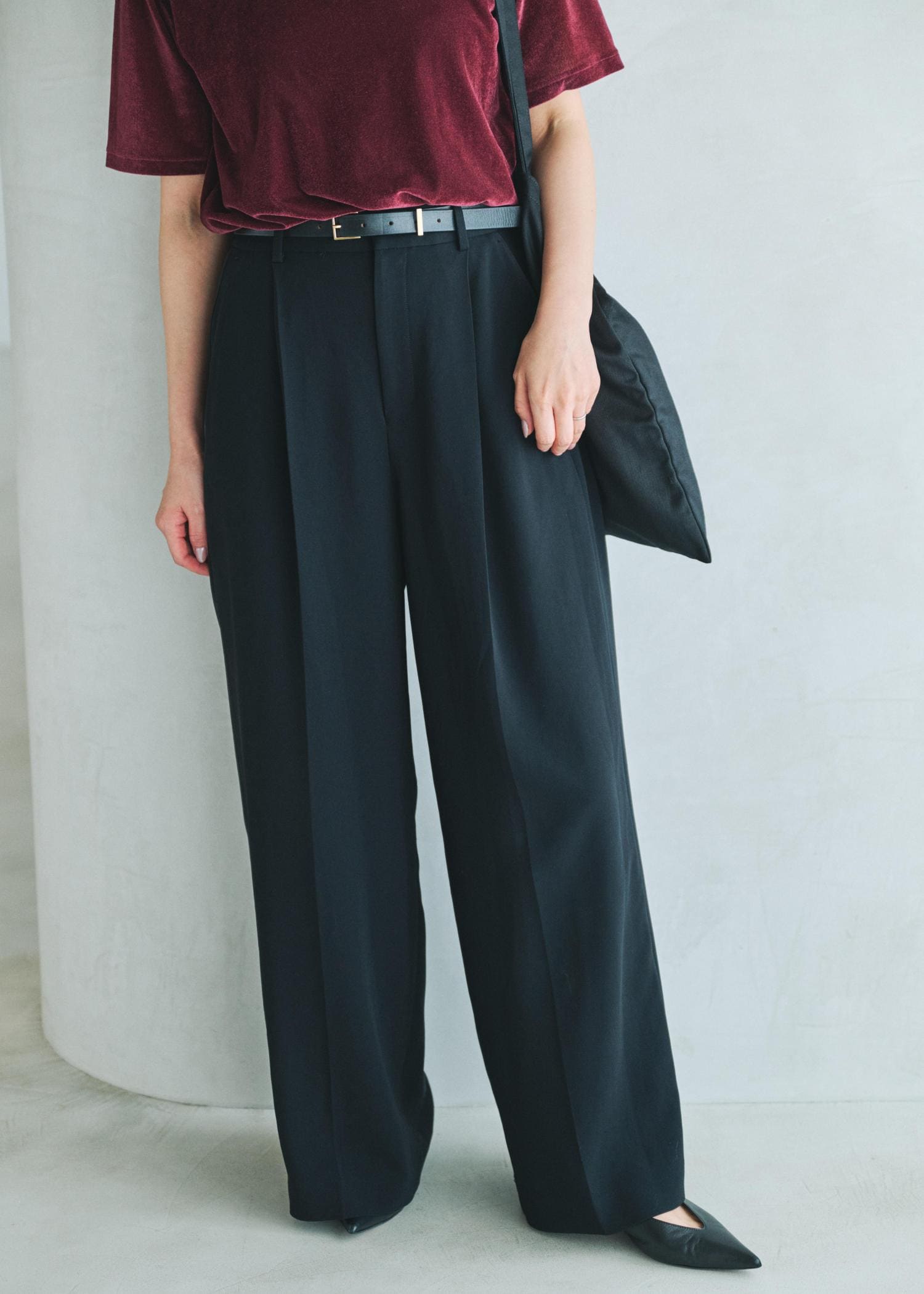 ウエストにワンタック入りの、ストレートのワイドシルエット。