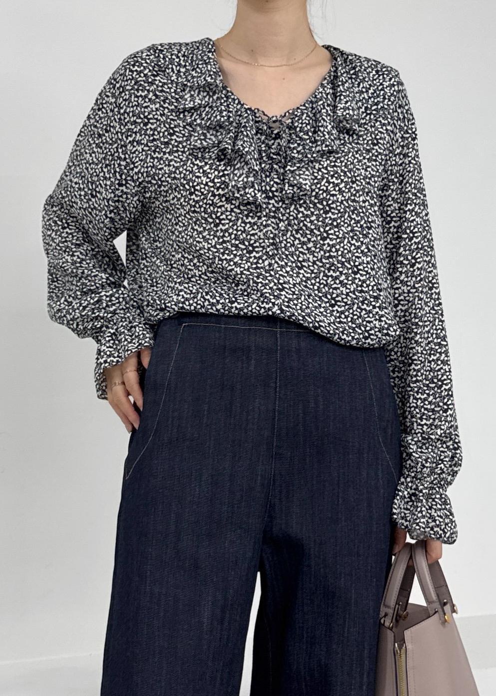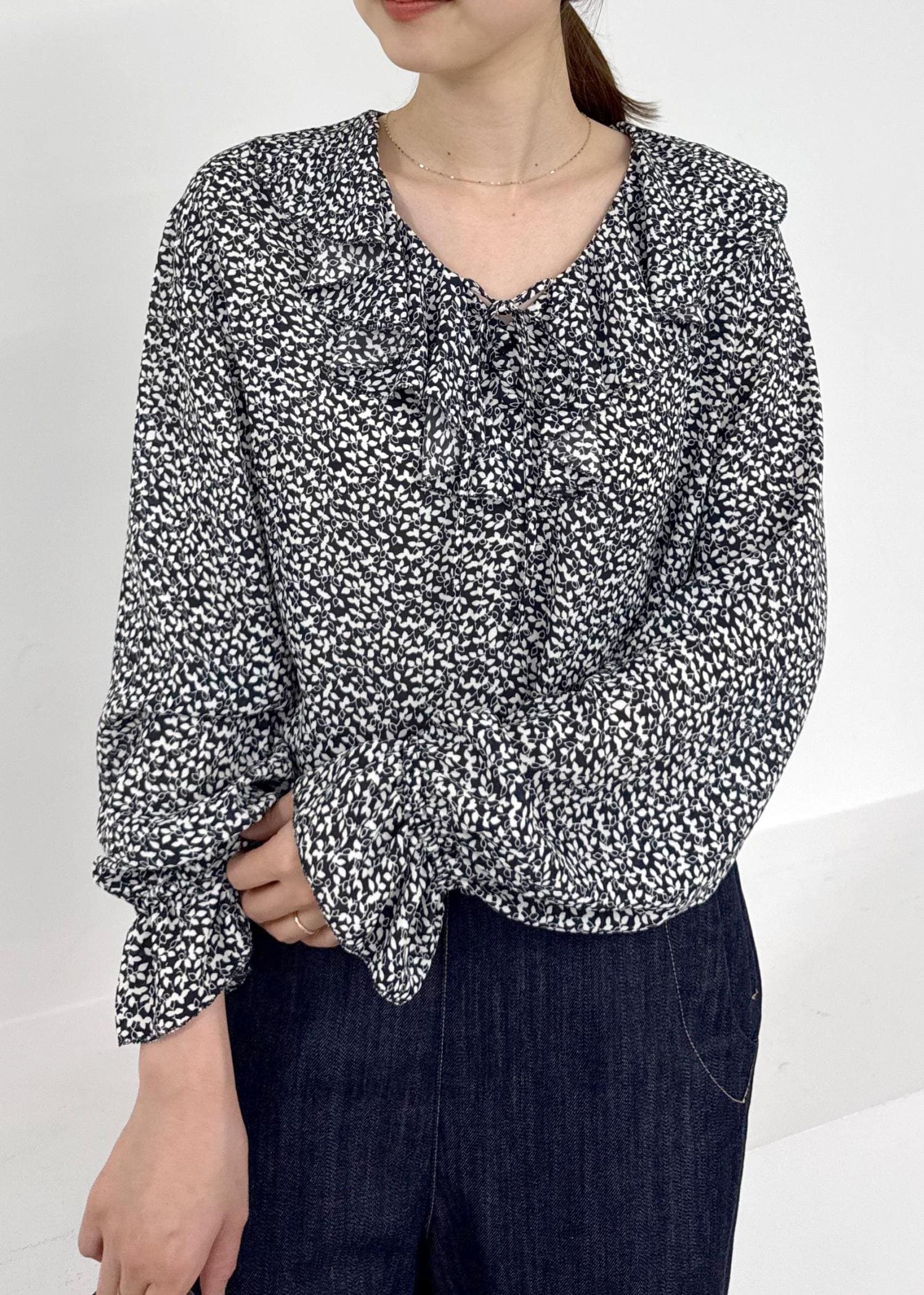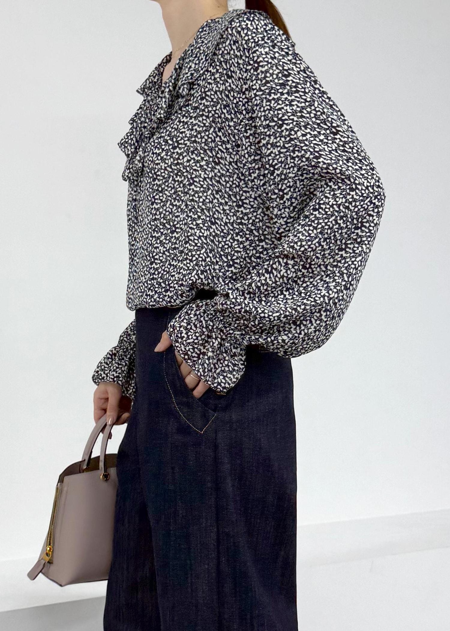 身頃にゆとりがあるので身体のラインも拾いにくいです。袖口のフリルにはゴムが入っているので、調節も可能◎