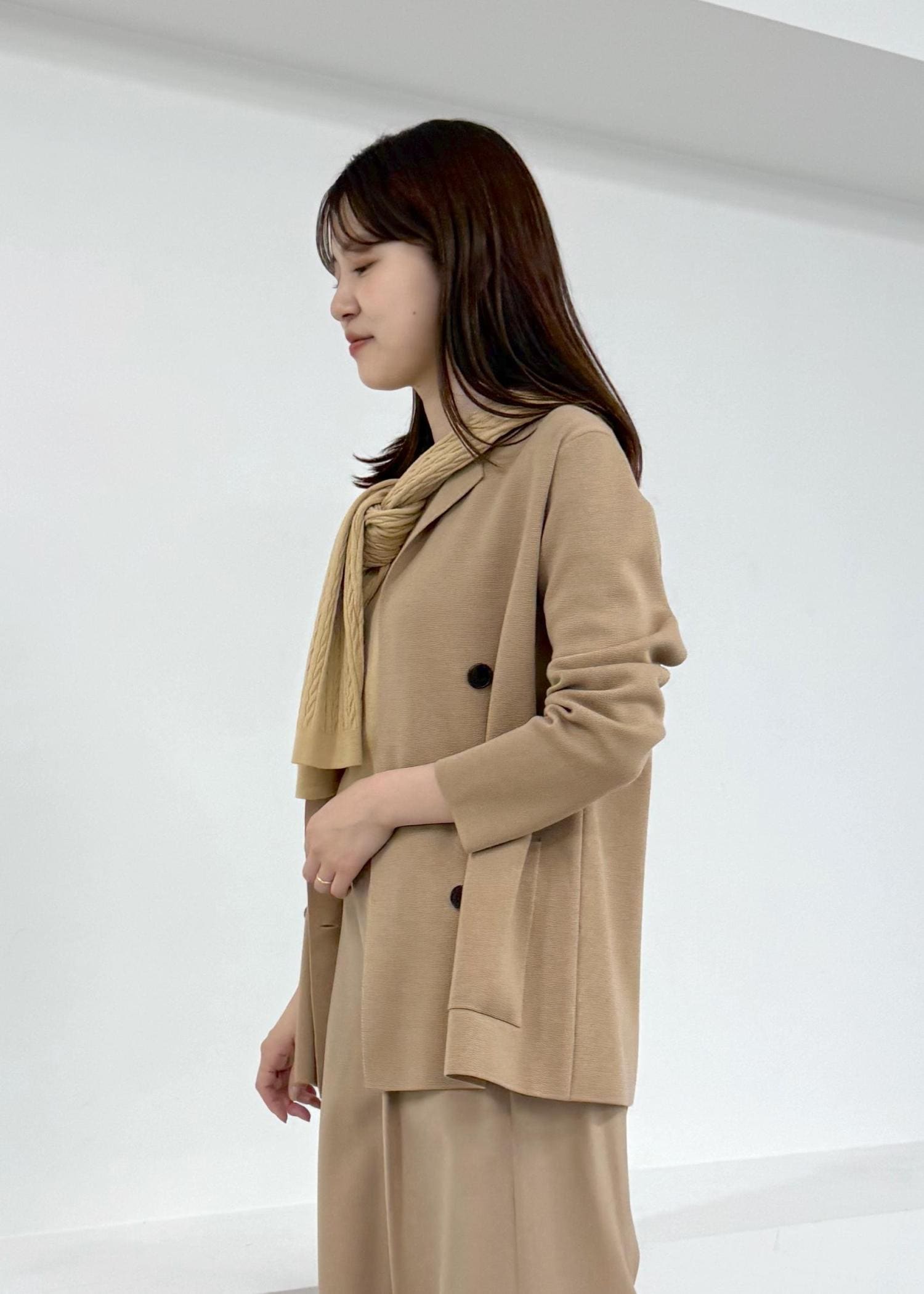 ROPÉミラノリブ ニットダブルジャケット/イージーケアベージュ / 38¥29,260レビュー肌触りが柔らかいウール混の素材。