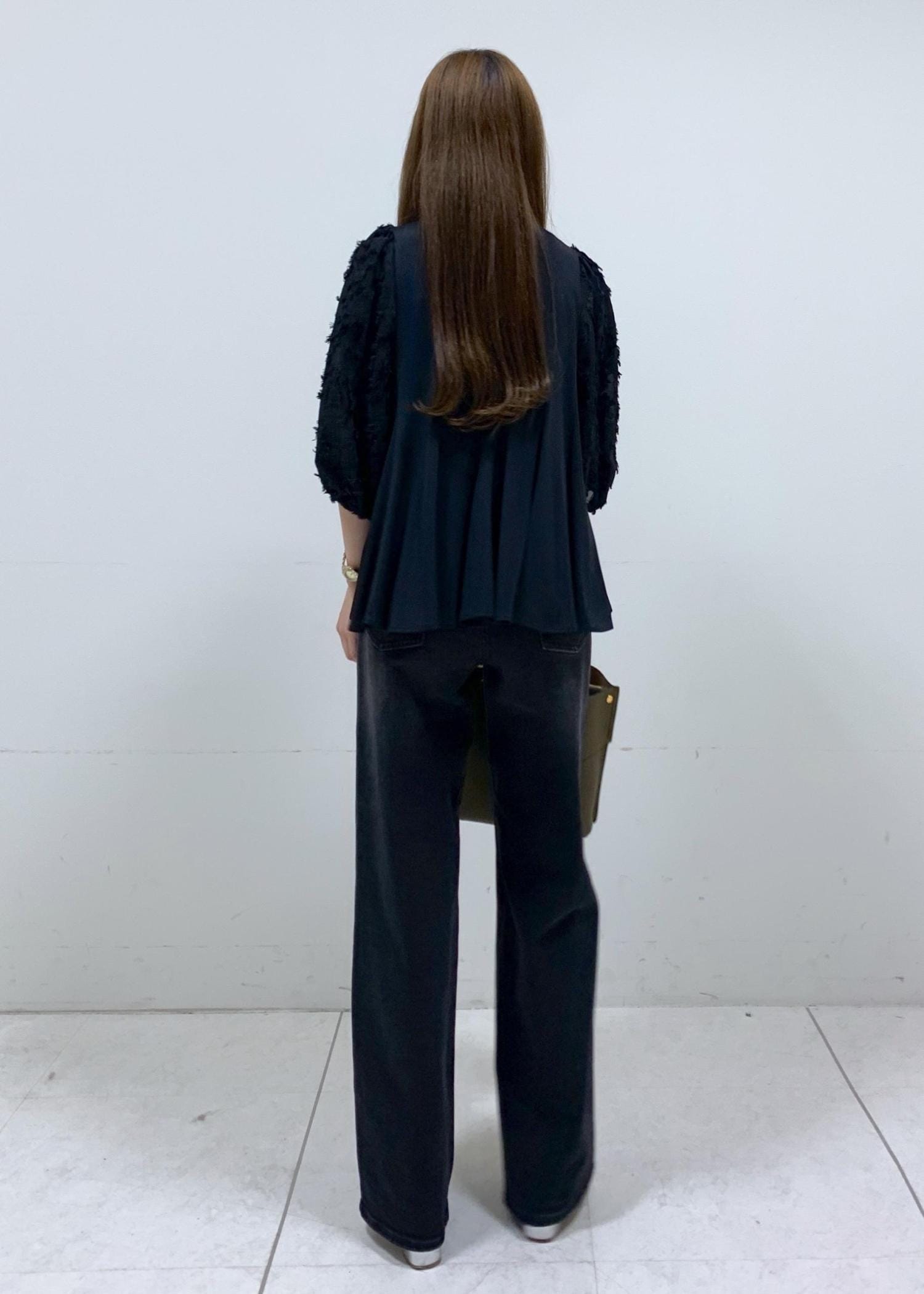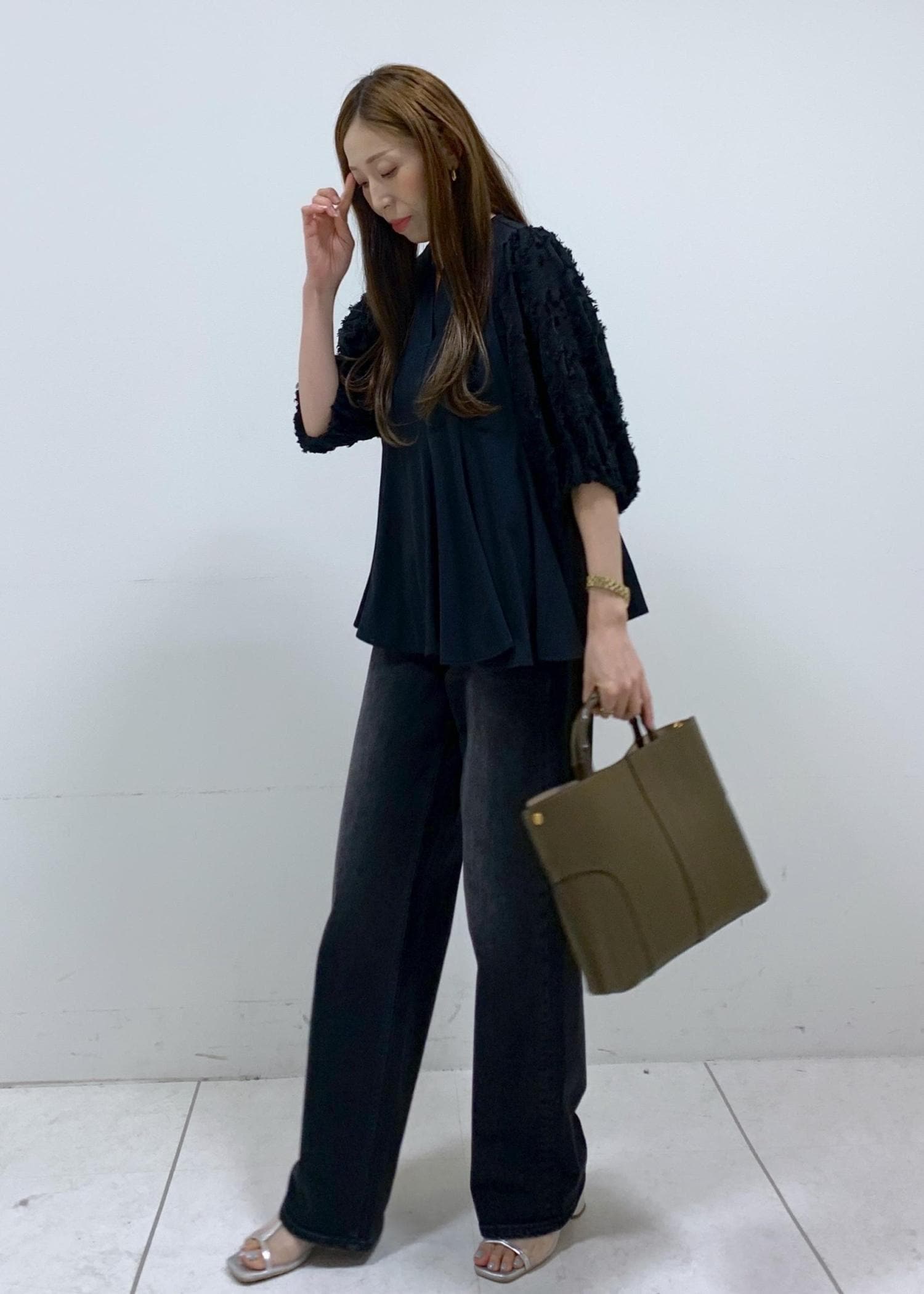 程よくウエストがシェイプされ、裾にかけて広がるペプラムシルエットでタイトスカートや、ワイドパンツ合わせがお勧めです!