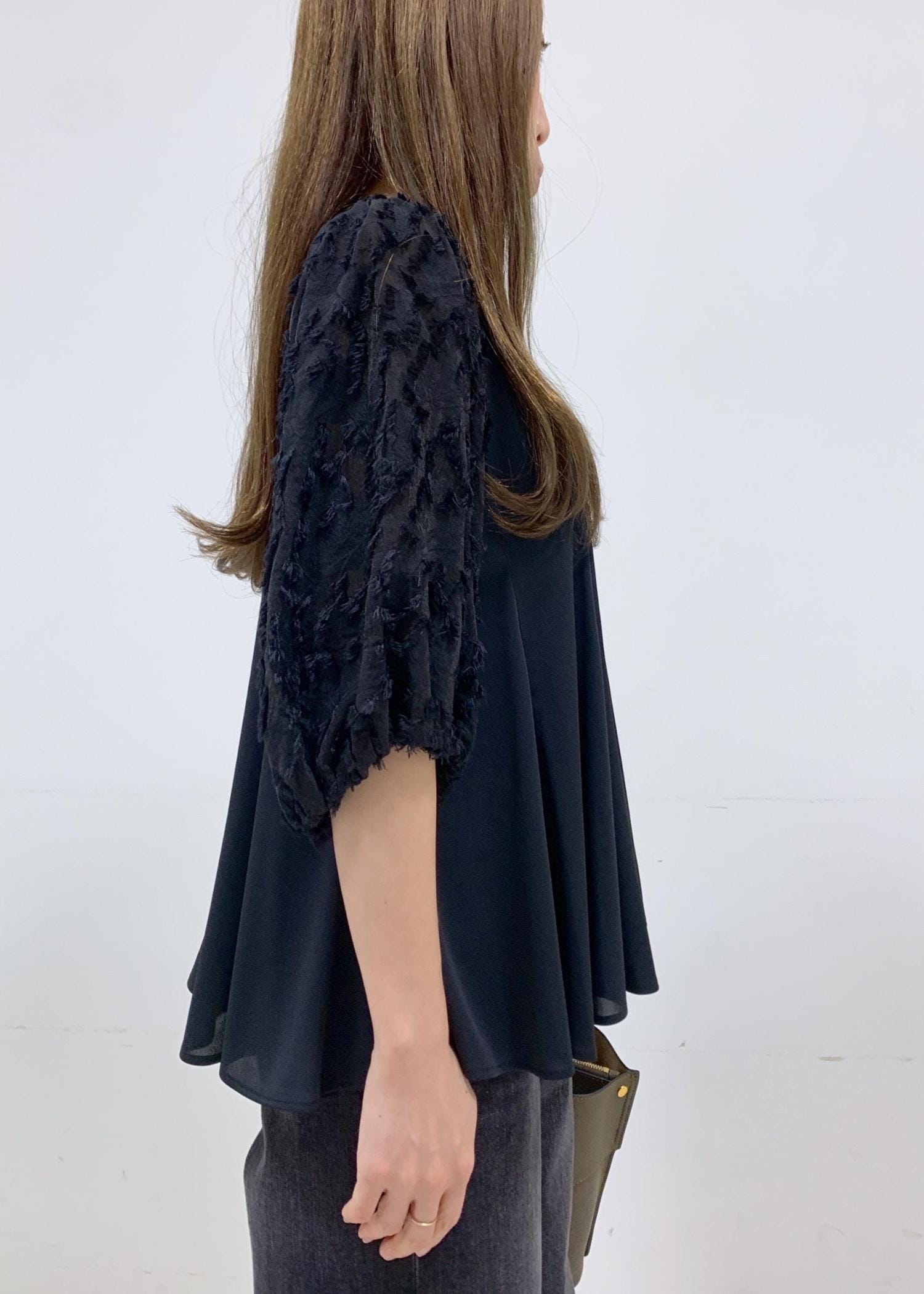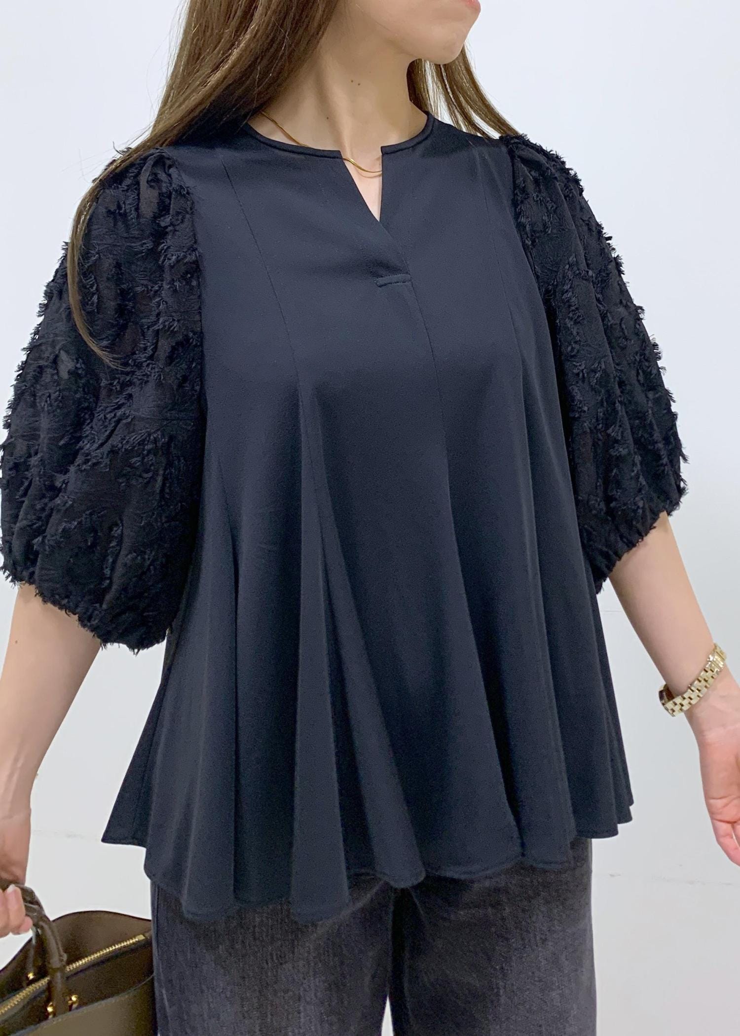 ROPÉジャガードスリーブコンビブラウス/イージーケアブラック / F¥19,800レビュー袖が華やかなジャガード素材のバルーンスリーブになっている一枚で着映えするブラウスです。