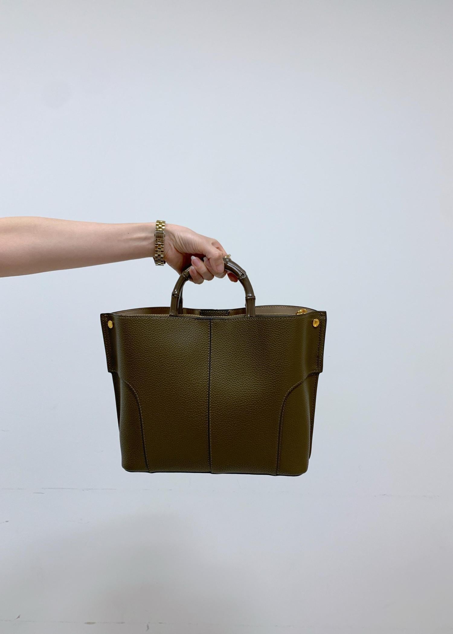マチも有るのでお出掛けに必要なお財布、スマホ、ポーチ等はしっかり収納出来てお出掛けにぴったりなサイズ感です。バンブーハンドルが高級感と抜け感をプラスし高見えします♪
