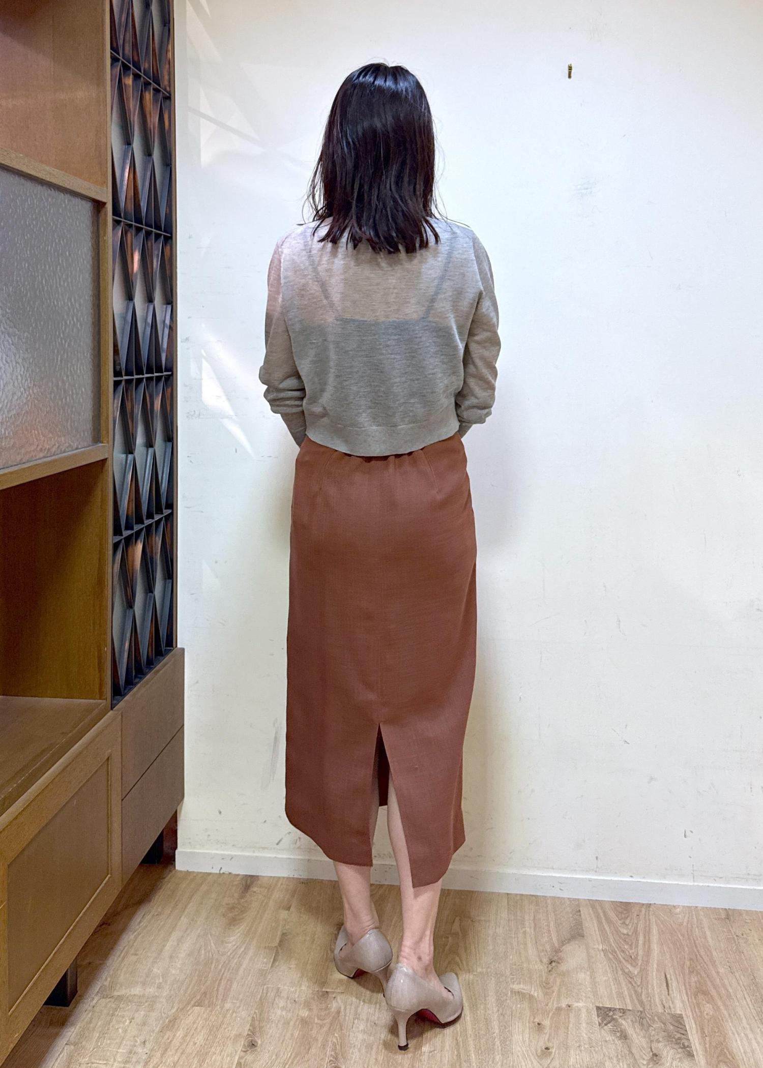 ROPÉリネンライク ポケット付きタイトスカート/イージーケアブラウン / 36¥20,900レビュー163センチ 36サイズ着用