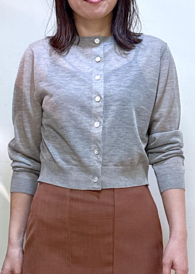 着丈は短めなのでどの身長の方にも合わせやすく、パンツでもスカートでもコーディネートしやすいので汎用性が高いです。