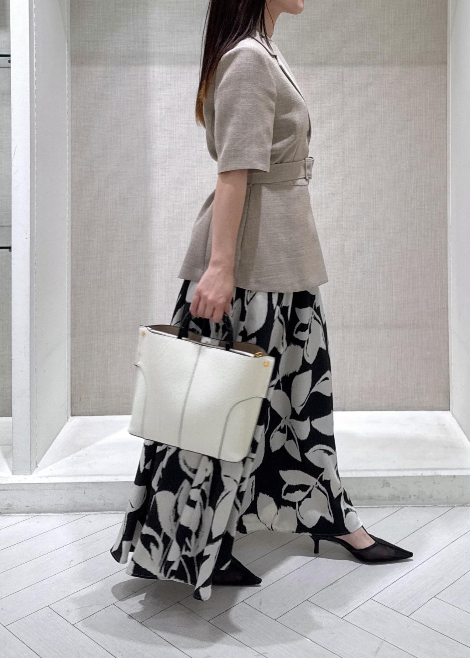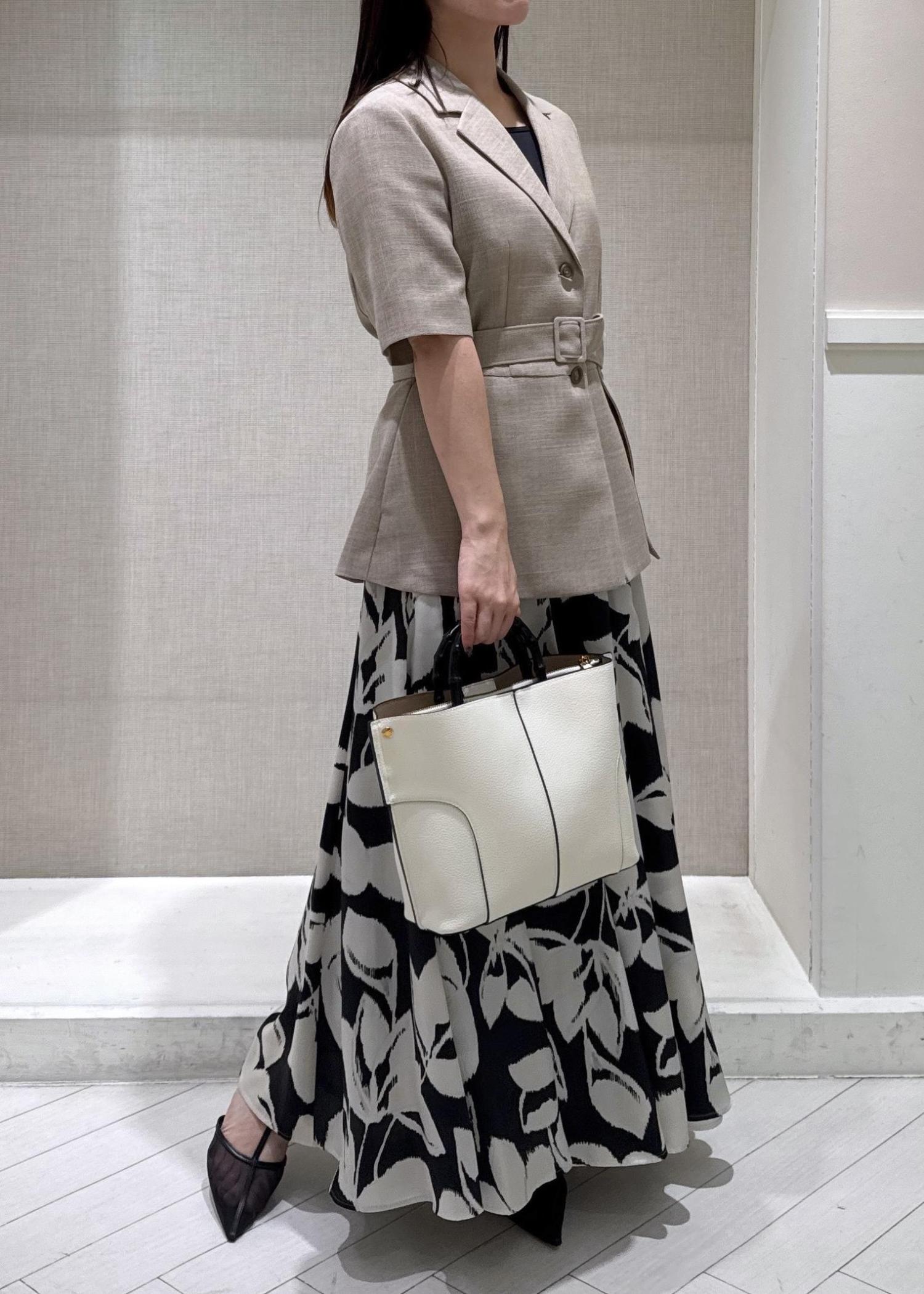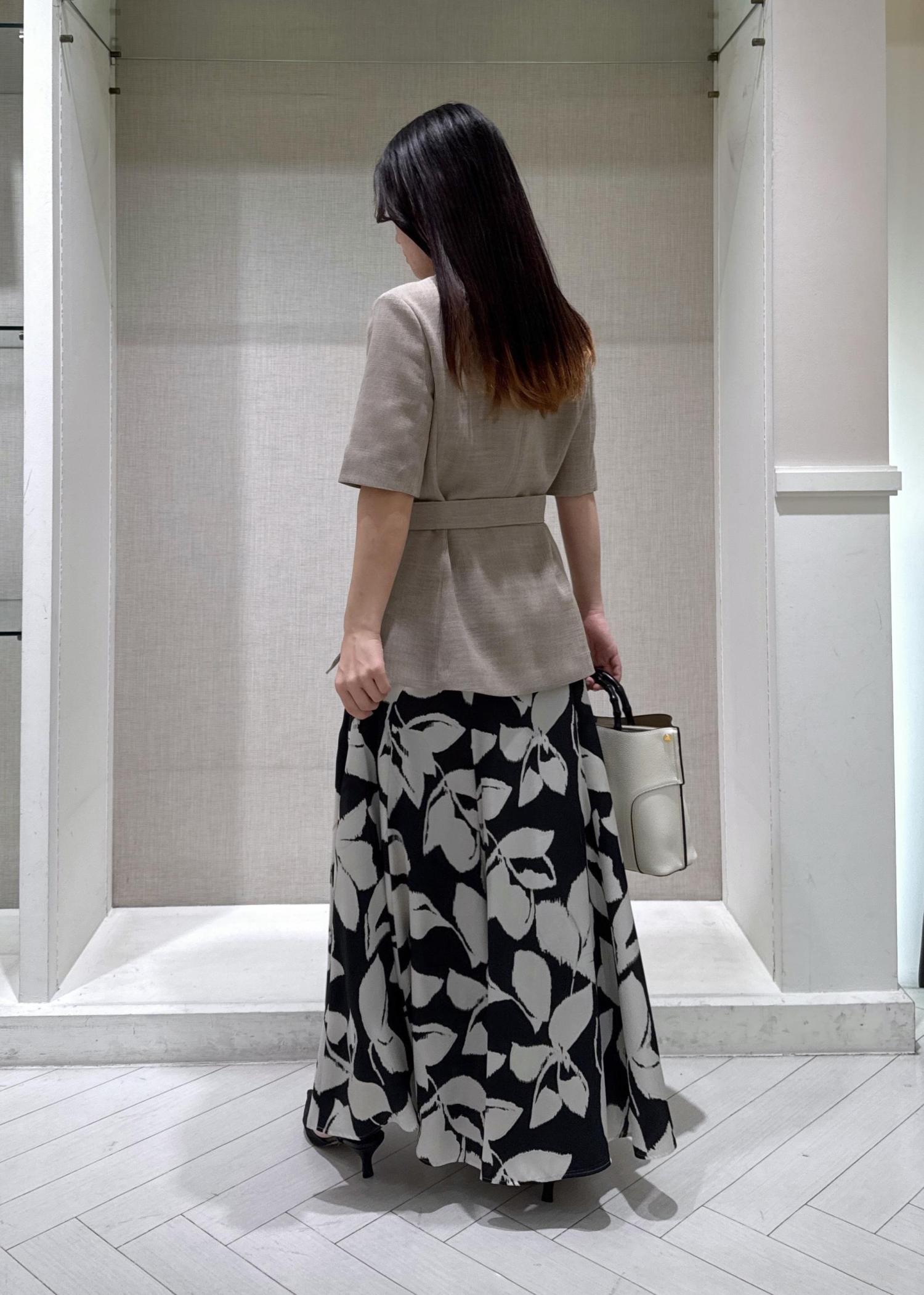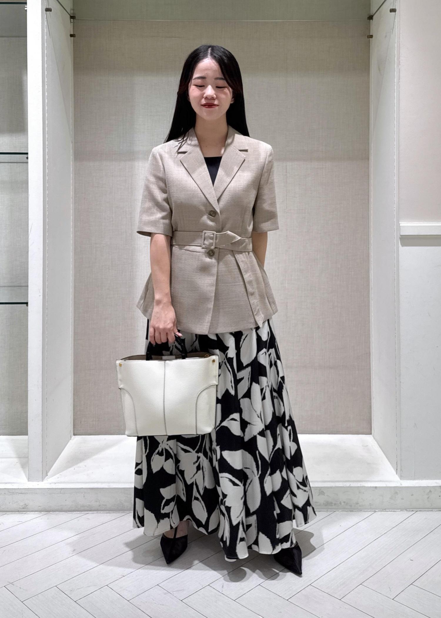 リネンのようなサッパリ感のあるジャケットは暑い日も快適に着用できます♪さらにフレア感のあるスカートと合わせると着心地も、見た目も、爽やかになること間違いなしです!
