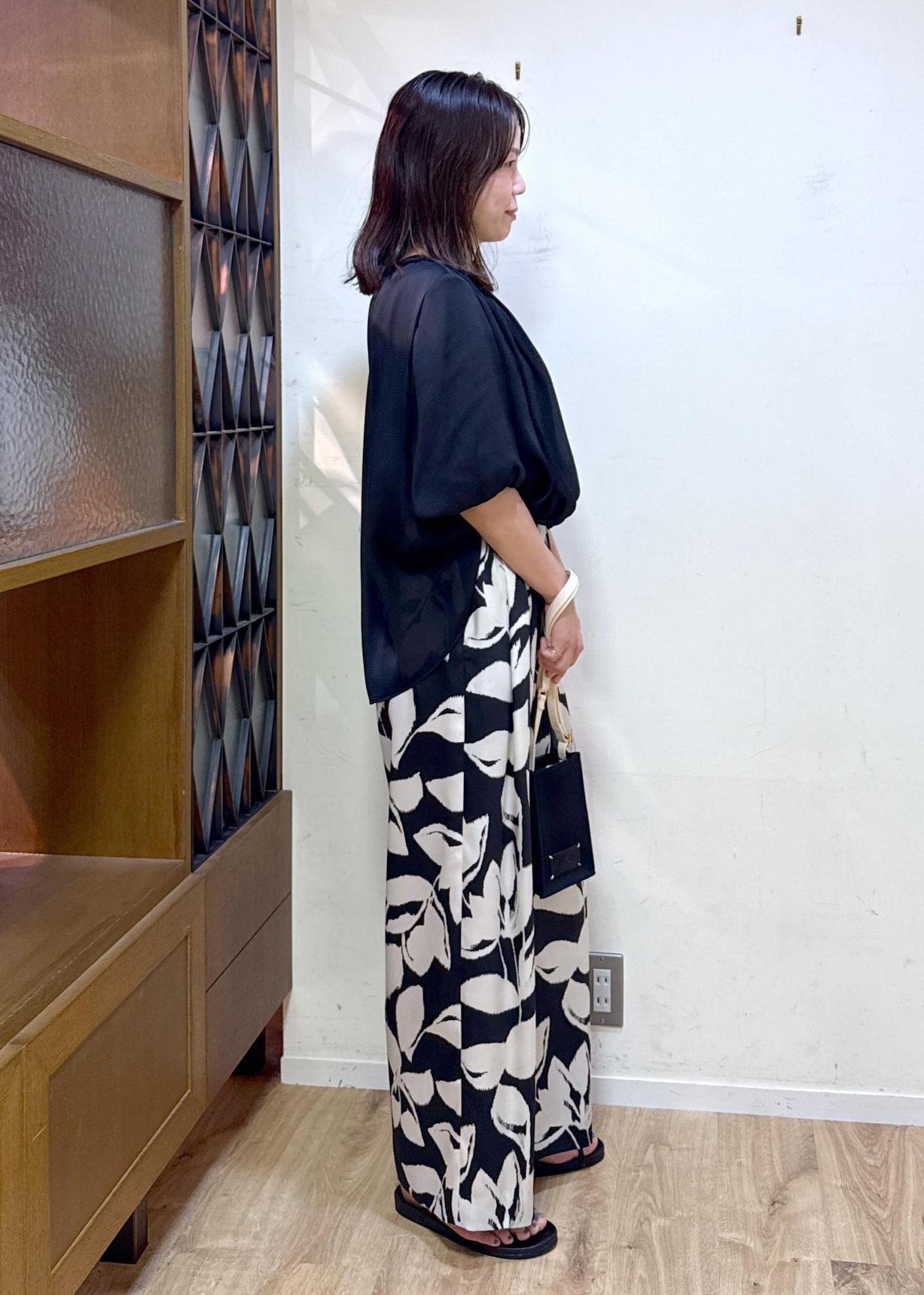 アウトレットROPÉDEVEAUXジオメトリックフラワーイージーワイドパンツブラック / 36¥13,750レビュー163センチ 36サイズ着用