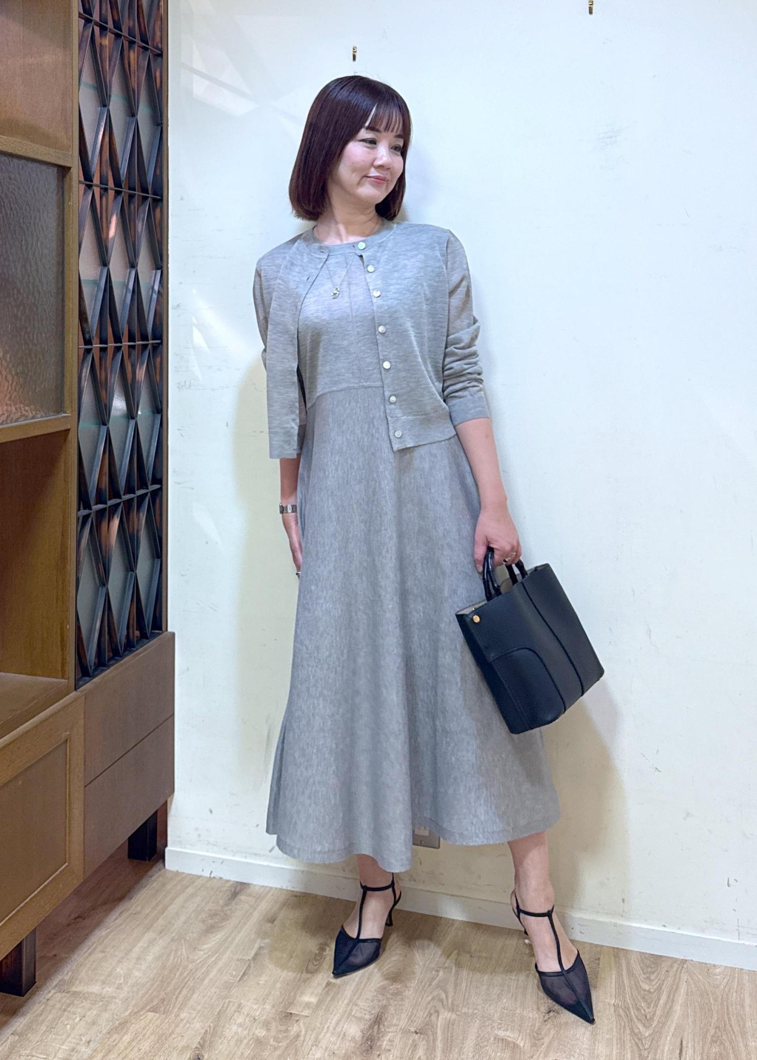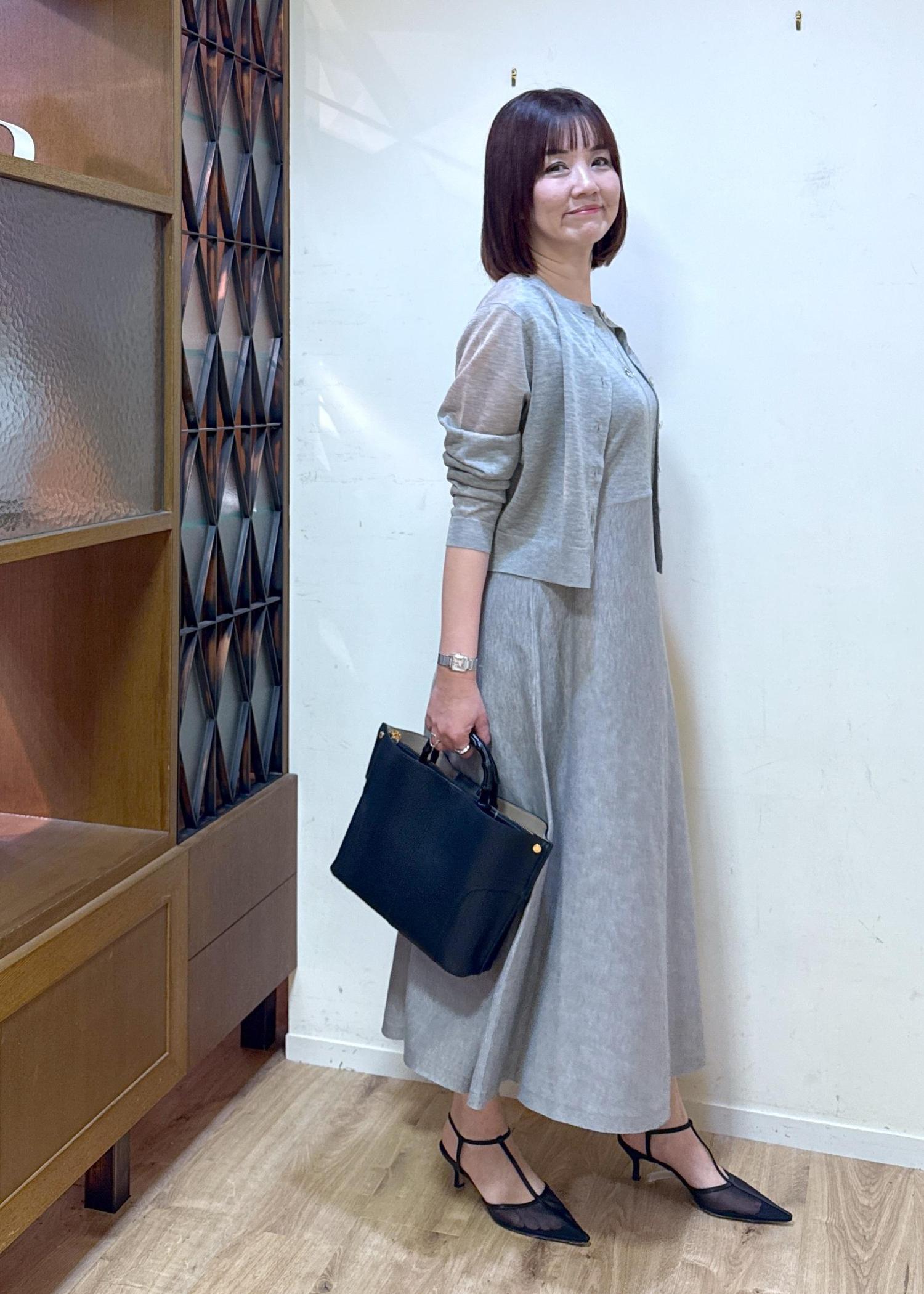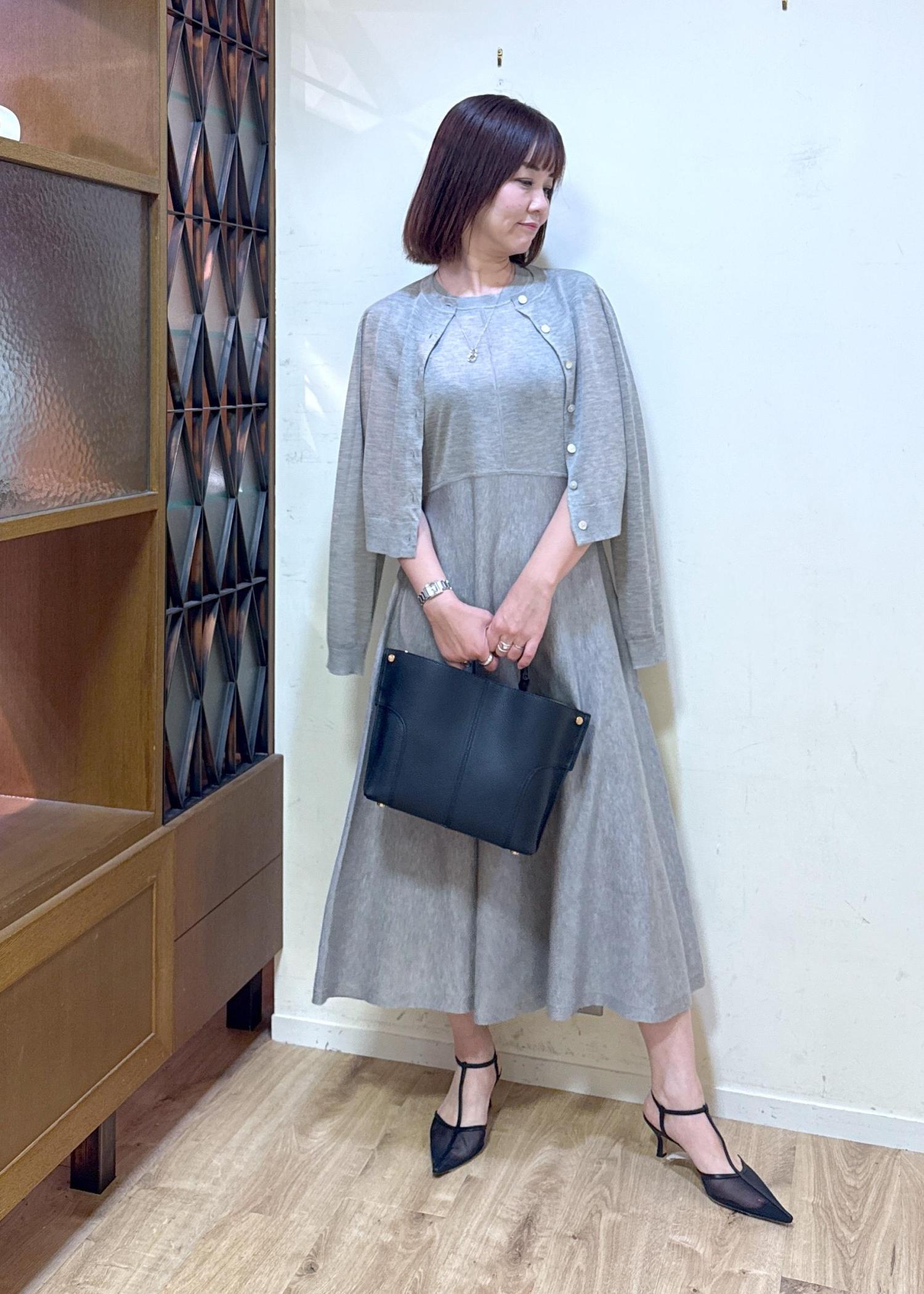 まだまだ残暑厳しいですが少し秋に向けて、LEVITAカーディガンとニットワンピースでキレイめな上品スタイリングで合わせてみました。ワンピースが高い位置にあるので凄く軽くて着心地感も最高です。