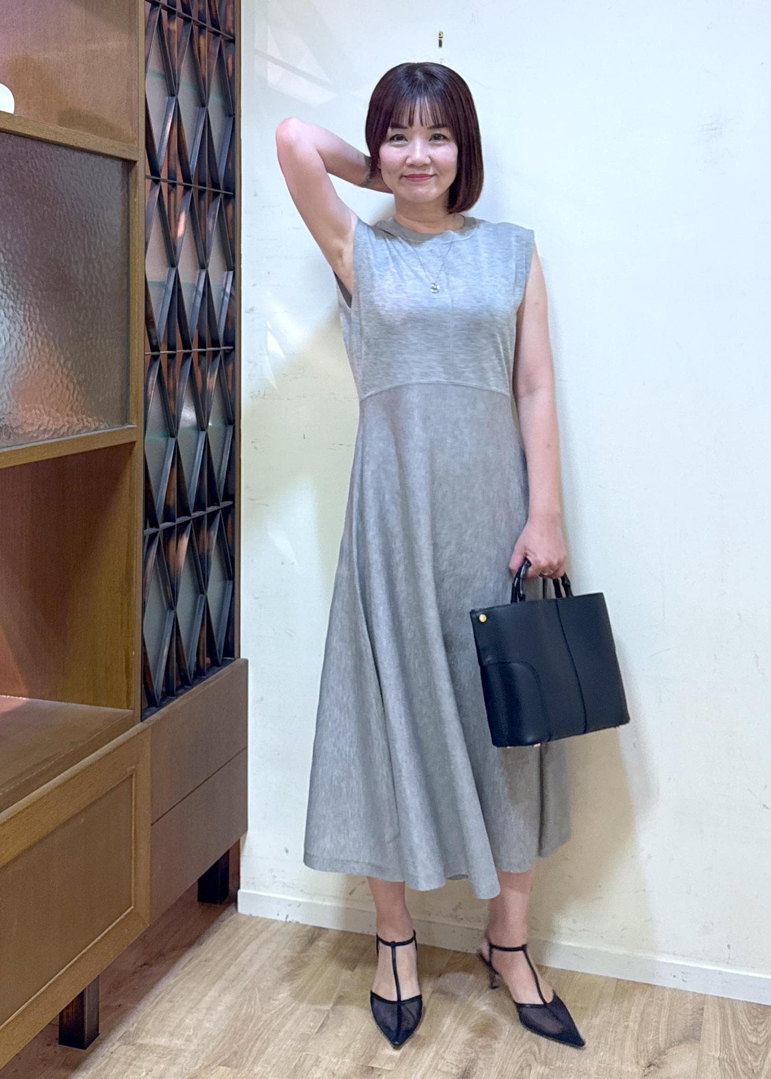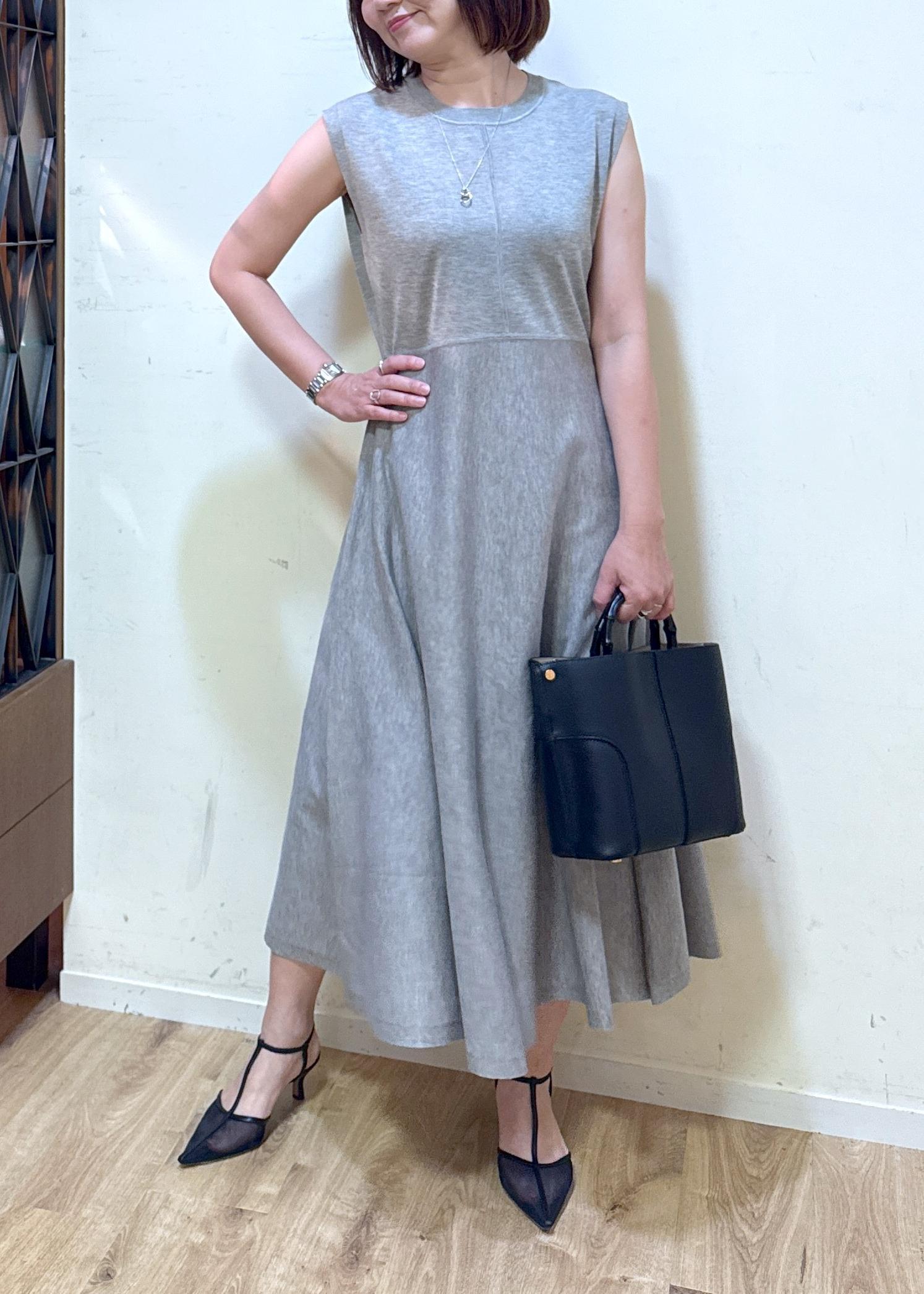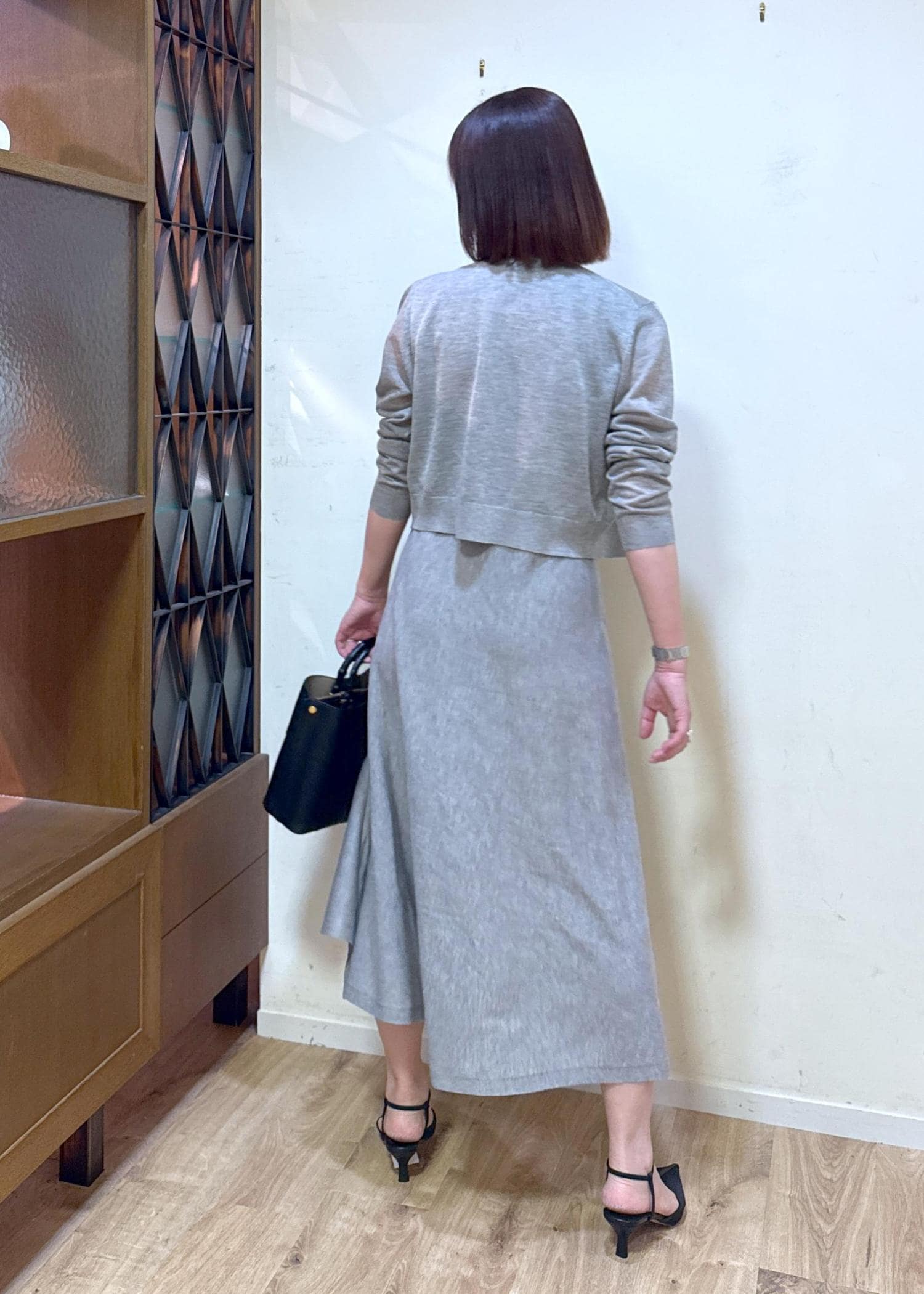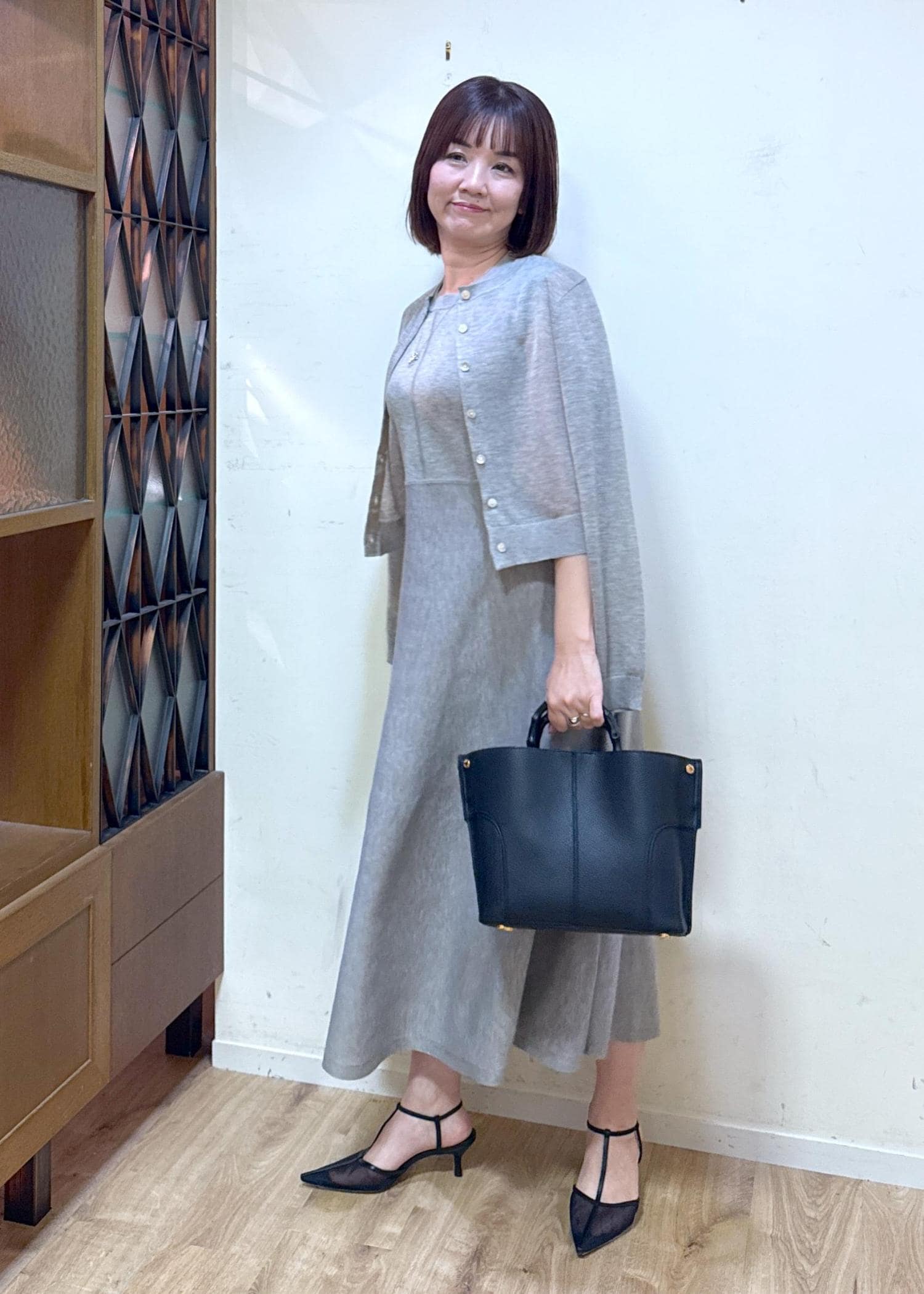 まだまだ残暑厳しいですが少し秋に向けて、LEVITAカーディガンとニットワンピースでキレイめな上品スタイリングで合わせてみました。ワンピースが高い位置にあるので凄く軽くて着心地感も最高です。