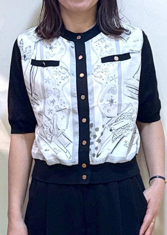 ROPÉ【洗える】【YUKO SAEKI for ROPE'・コラボ】スカーフ柄プリント カーディガンブラウスブラック / F¥27,500レビュー163センチ Fサイズ着用