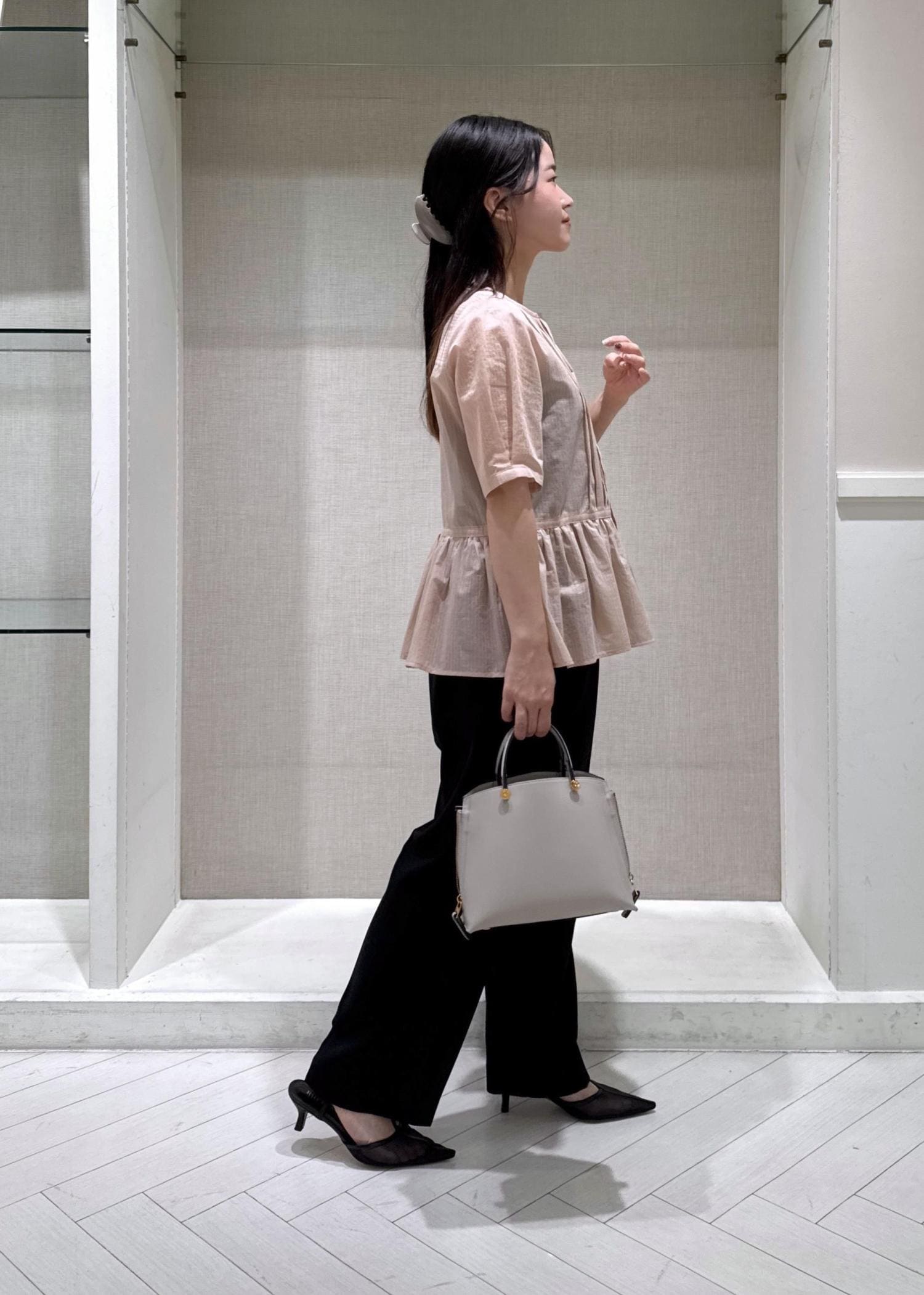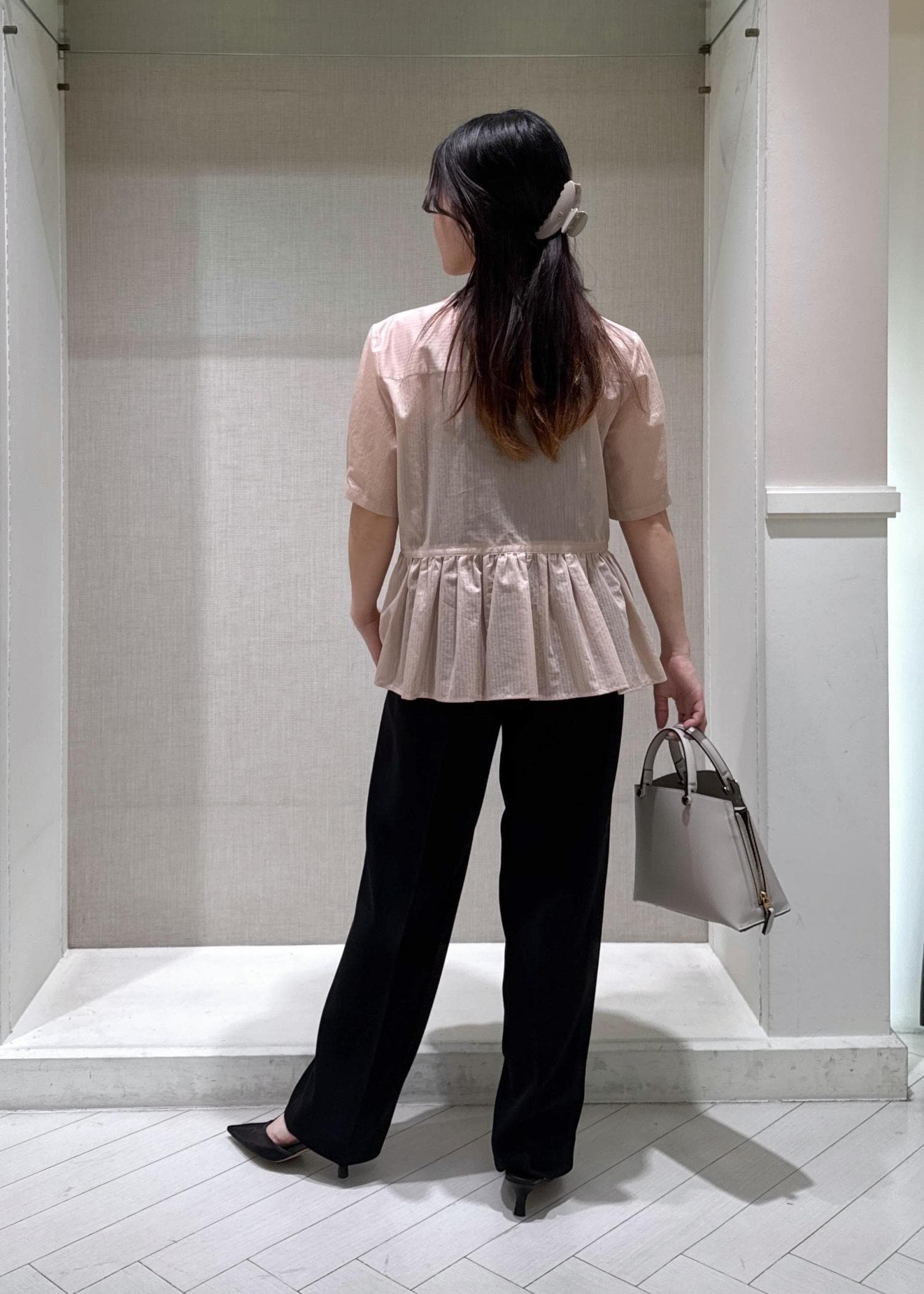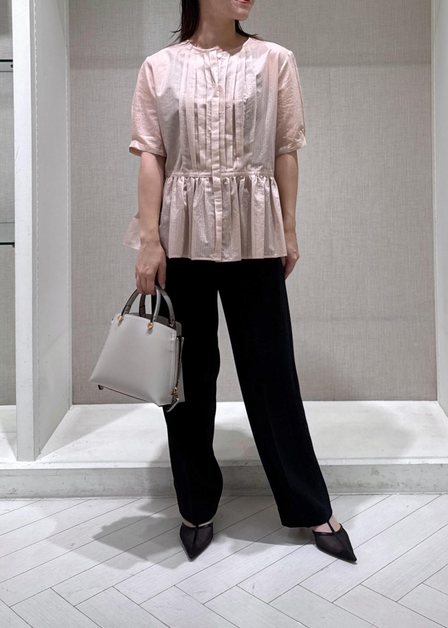 足の甲にかかるほどの丈感ですが、センタープレスが入っていてきちんと感の出るパンツです。 -
