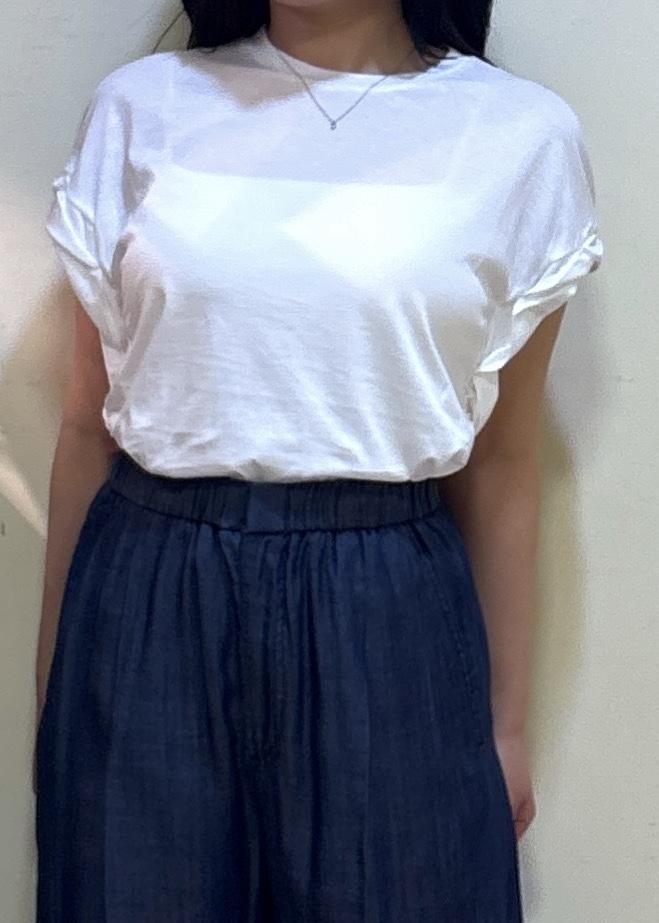 アウトレットROPÉツイストフレンチスリーブTシャツホワイト / F¥5,225レビュー身長152㎝ Fサイズ着用