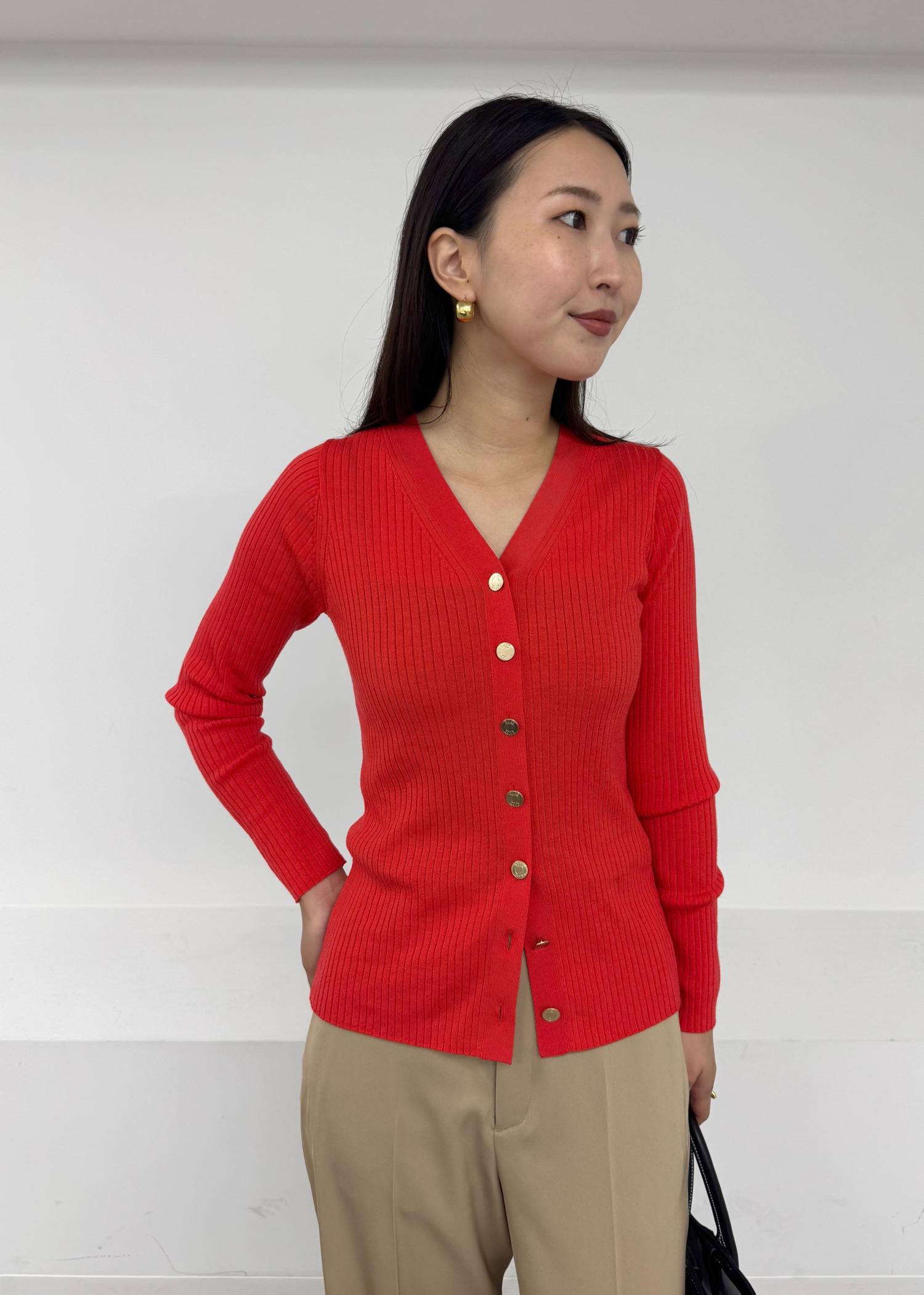 NEW!ROPÉハイゲージワイドリブニットカーディガンレッド / F¥25,300レビュー163cmでFサイズ着用。
