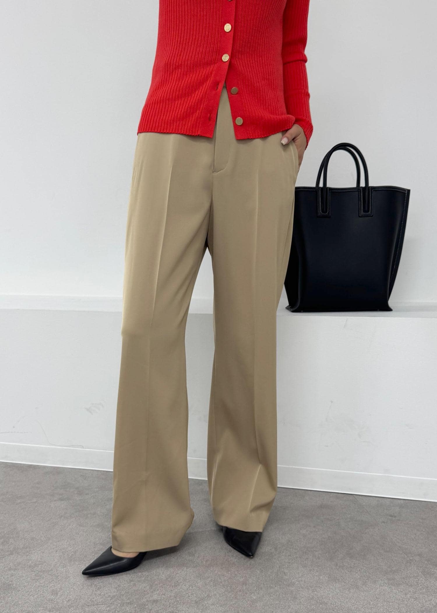 ROPÉセンタープレスパンツ(トリアセテートツイル/デニムライク)ベージュ / 38¥18,480レビュー163cmで38サイズ着用。