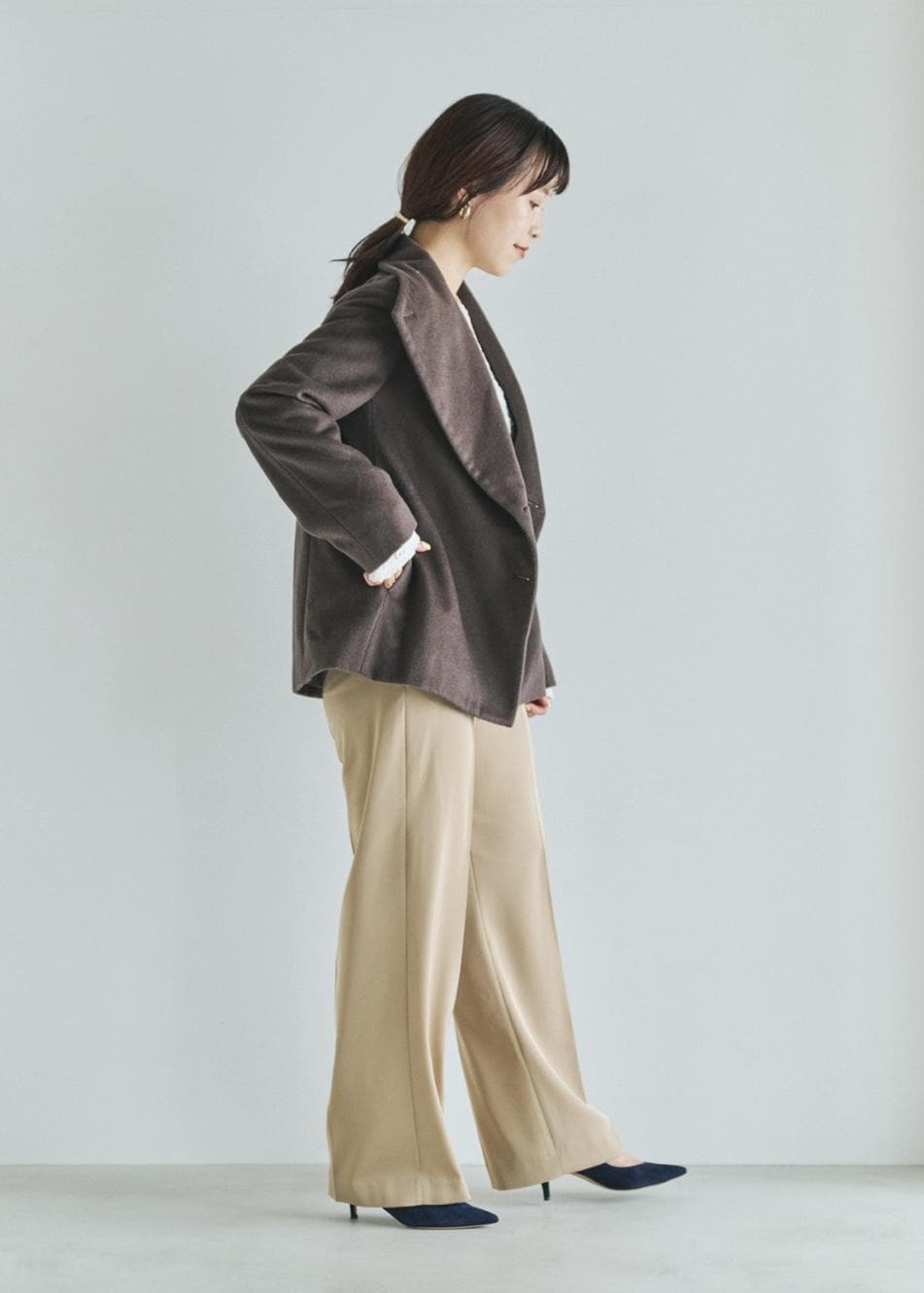 身幅は直線的なシルエットでボタンを閉めてもゆったりしていて、厚手のニットでも安心して着られそうでした♪ -