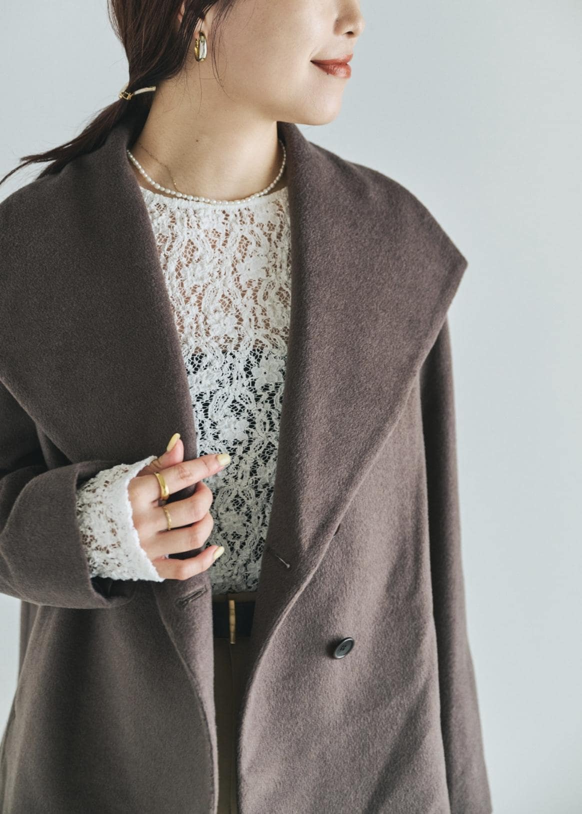 NEW!ROPÉプレミアムカシミヤ ショートコート【25AW】ダークブラウン / 38¥53,900レビュー着丈はお尻がほとんど隠れる丈感で安心感◎