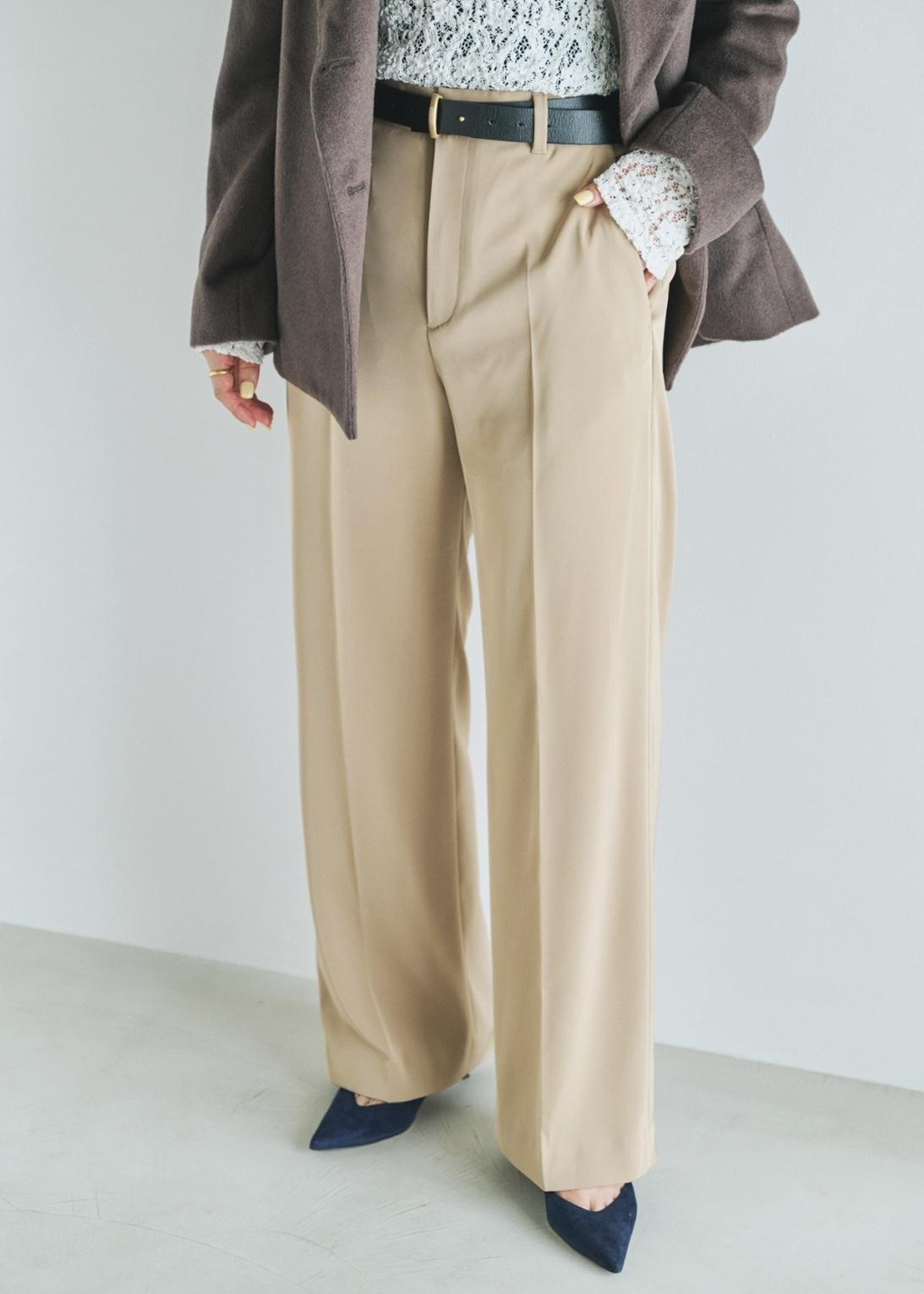 ROPÉセンタープレスパンツ(トリアセテートツイル/デニムライク)ベージュ / 38¥18,480レビュー普段のワイドパンツだとハイウエストでも大きく感じますが、こちらはジャストサイズでした。後ろゴムでも窮屈感もなくゆとりを持って着られて動きやすかったです◎