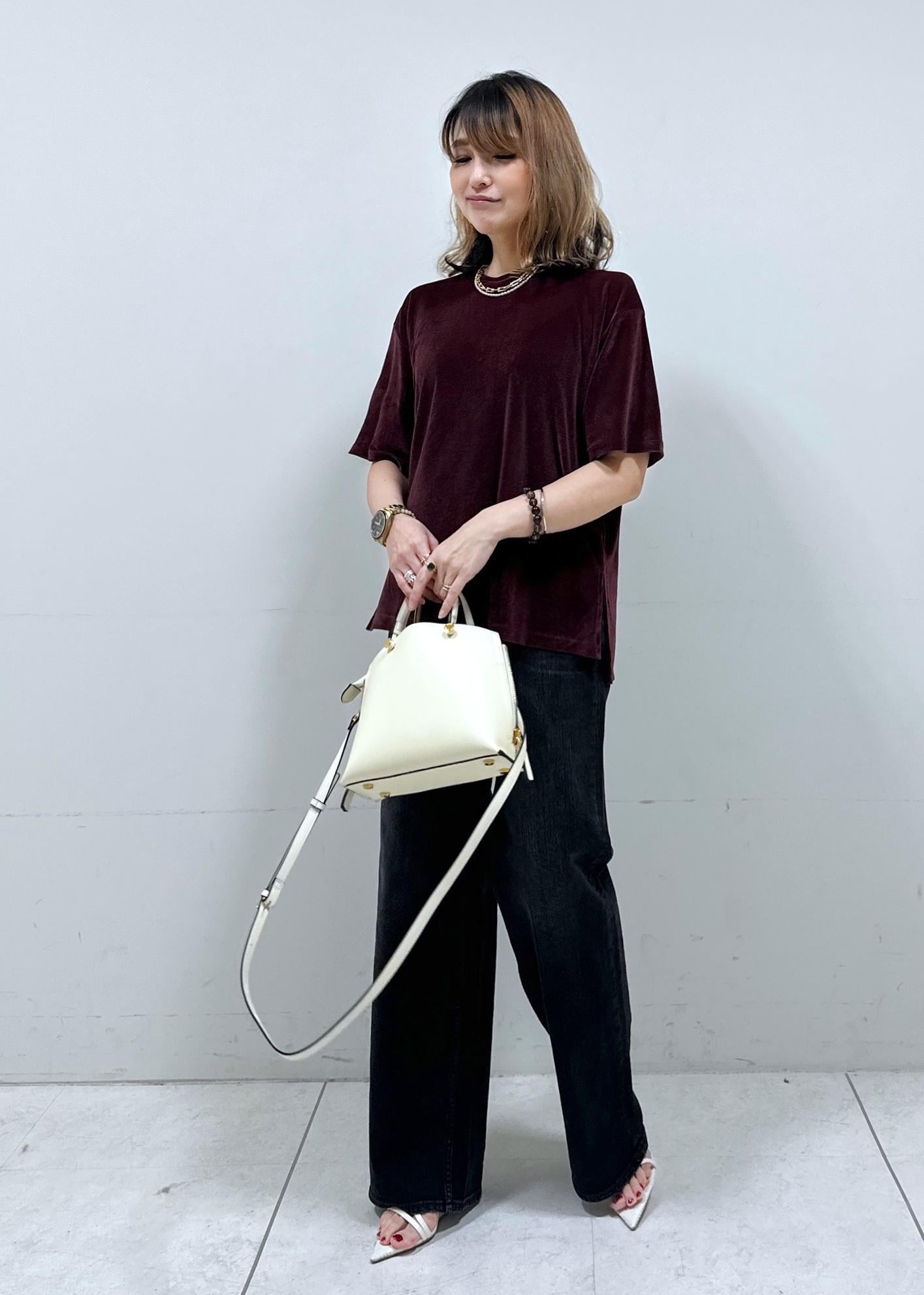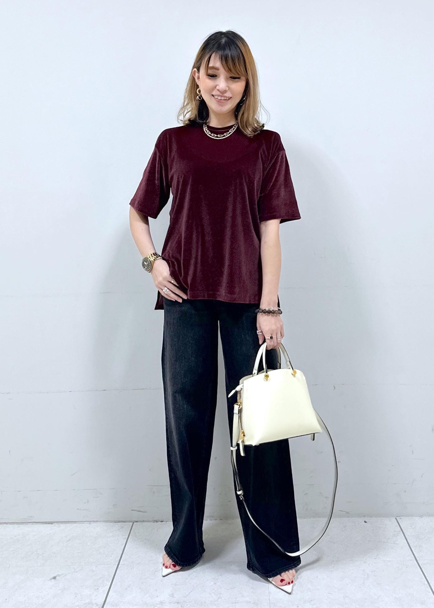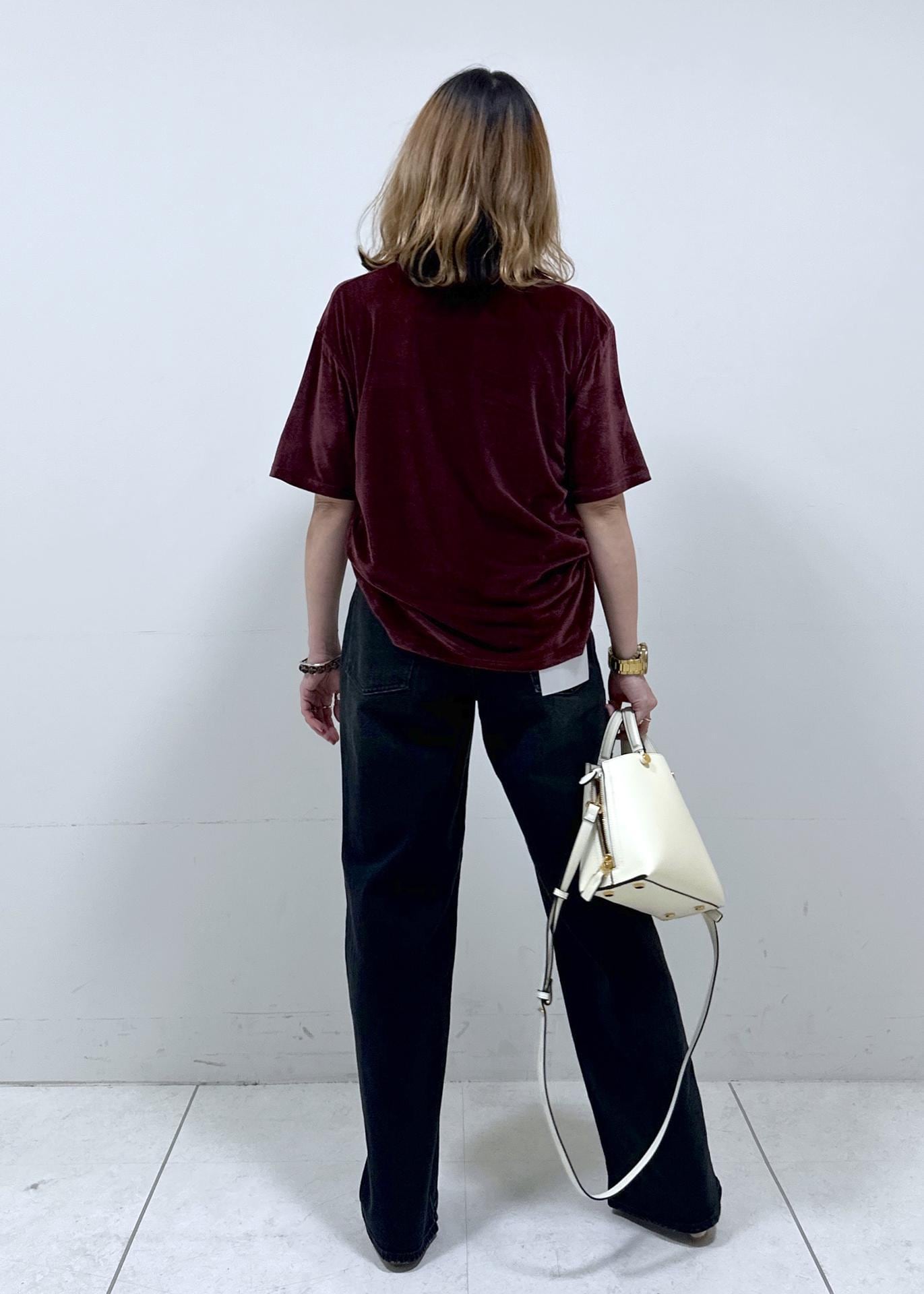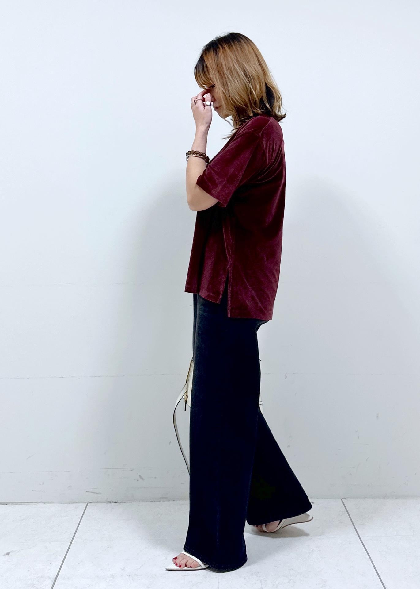 させつつも、ベロアトップスのキレイ目感で、カジュアルダウンし過ぎないコーデにしました!