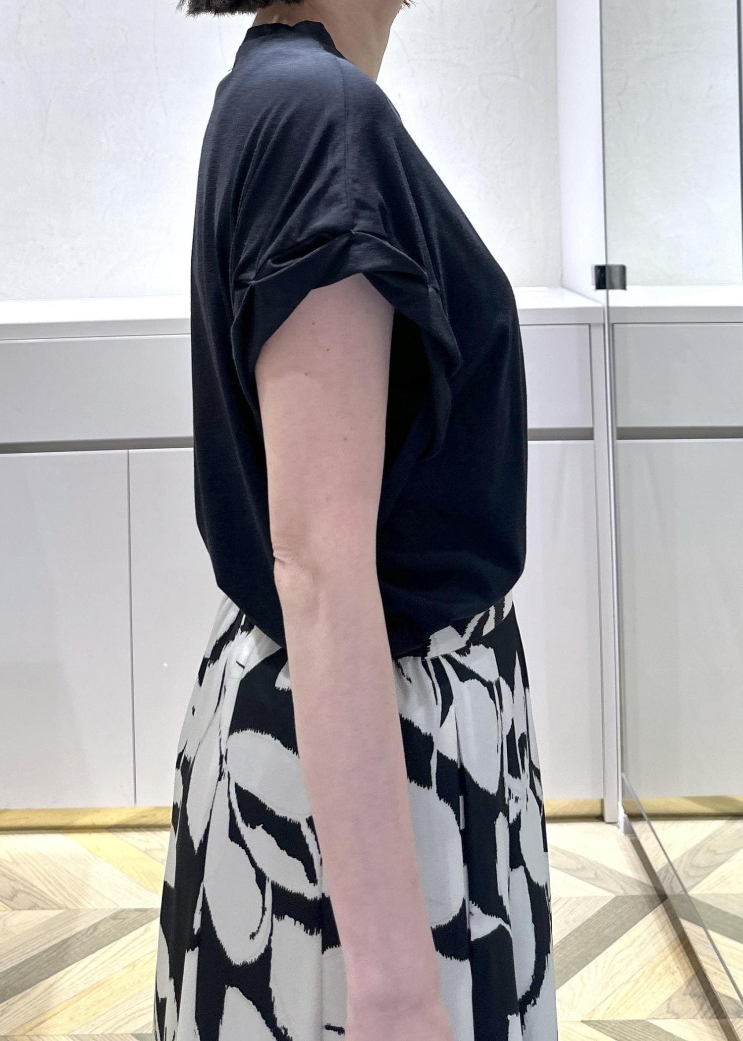 袖丈は二の腕にかかるくらいで、気になる腕周りが程よくカバーされ、