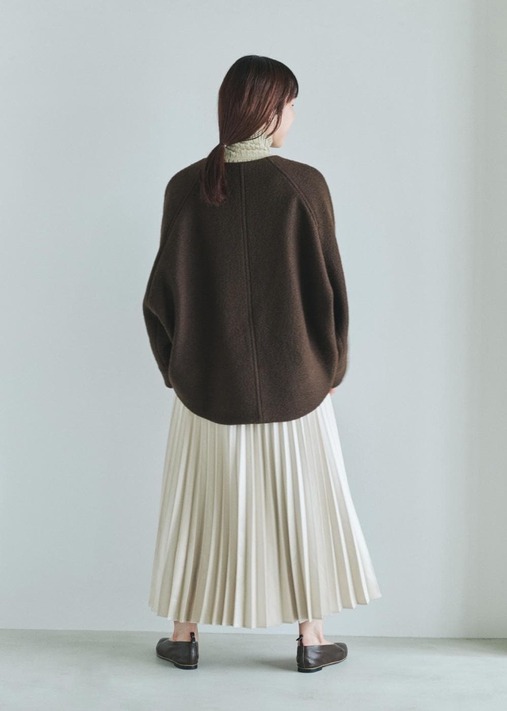 見頃はAラインのシルエットで裾にかけて広がっており、厚手のニットでも簡単に着られそうです。