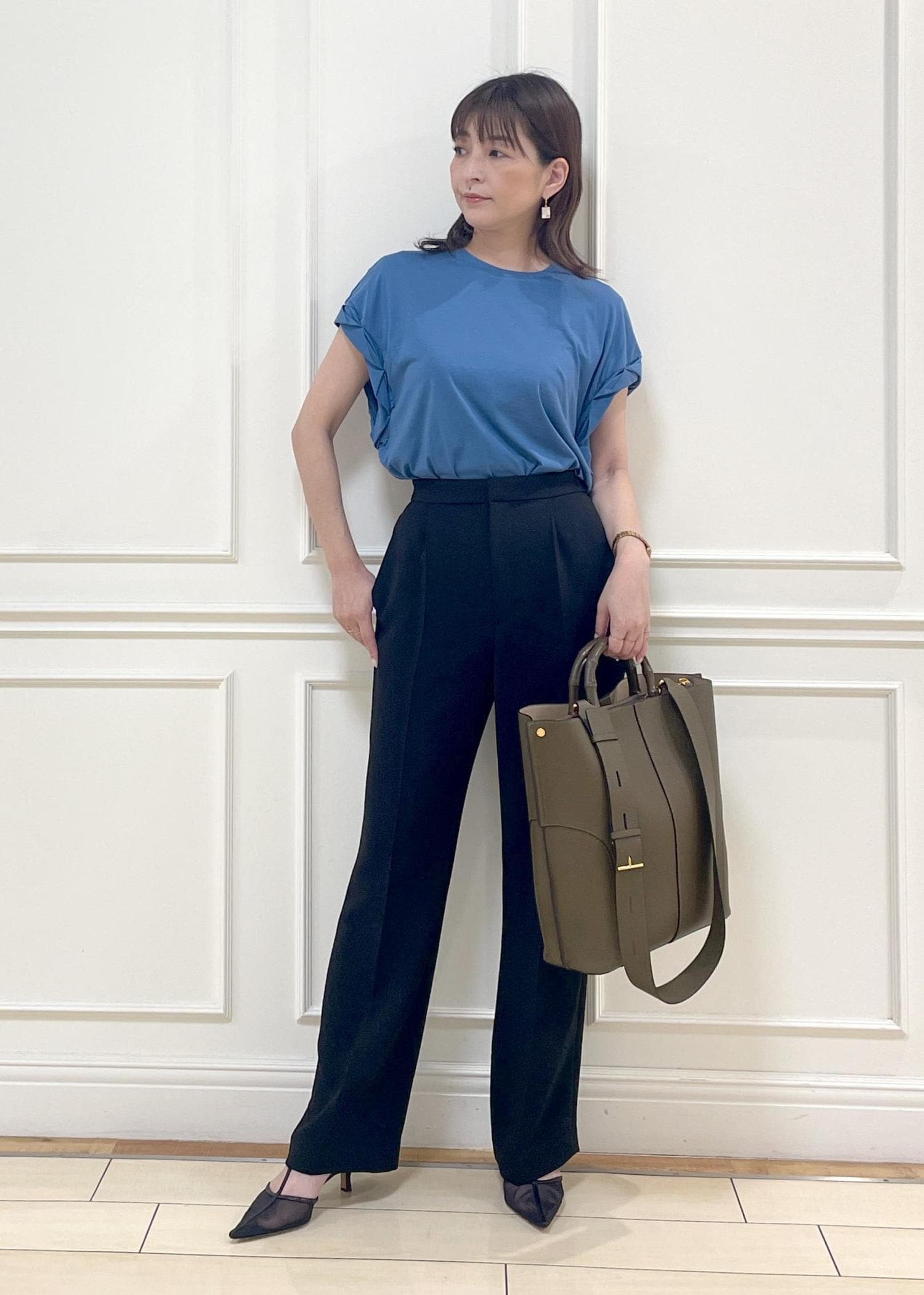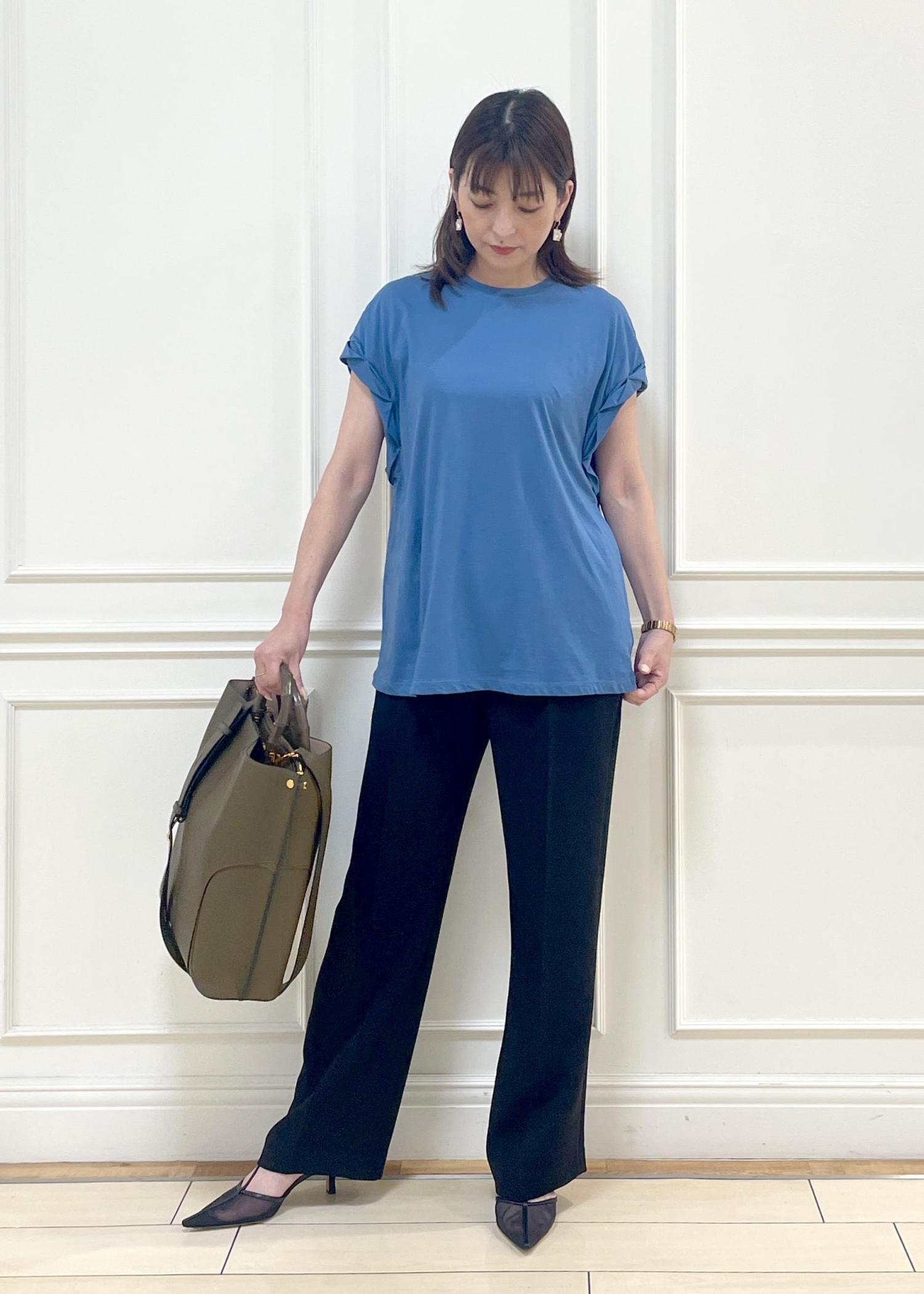 アウトレットROPÉツイストフレンチスリーブTシャツブルー / F¥5,225レビューFサイズ着用。