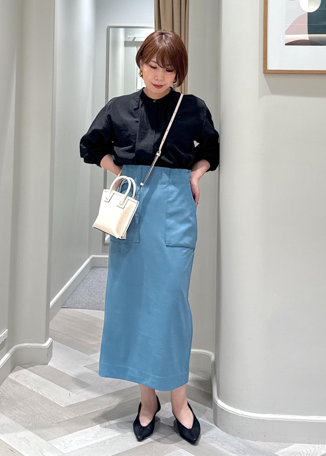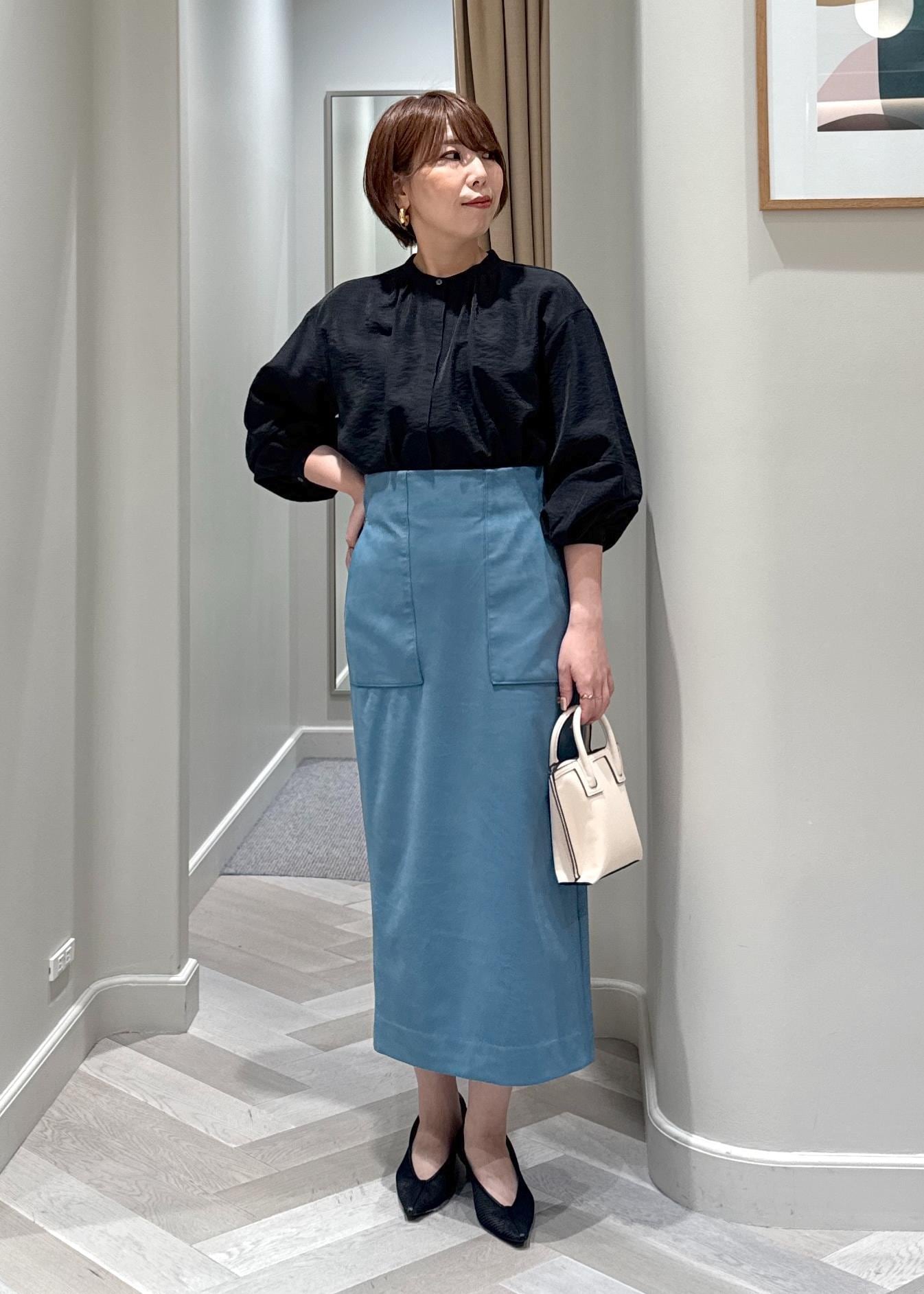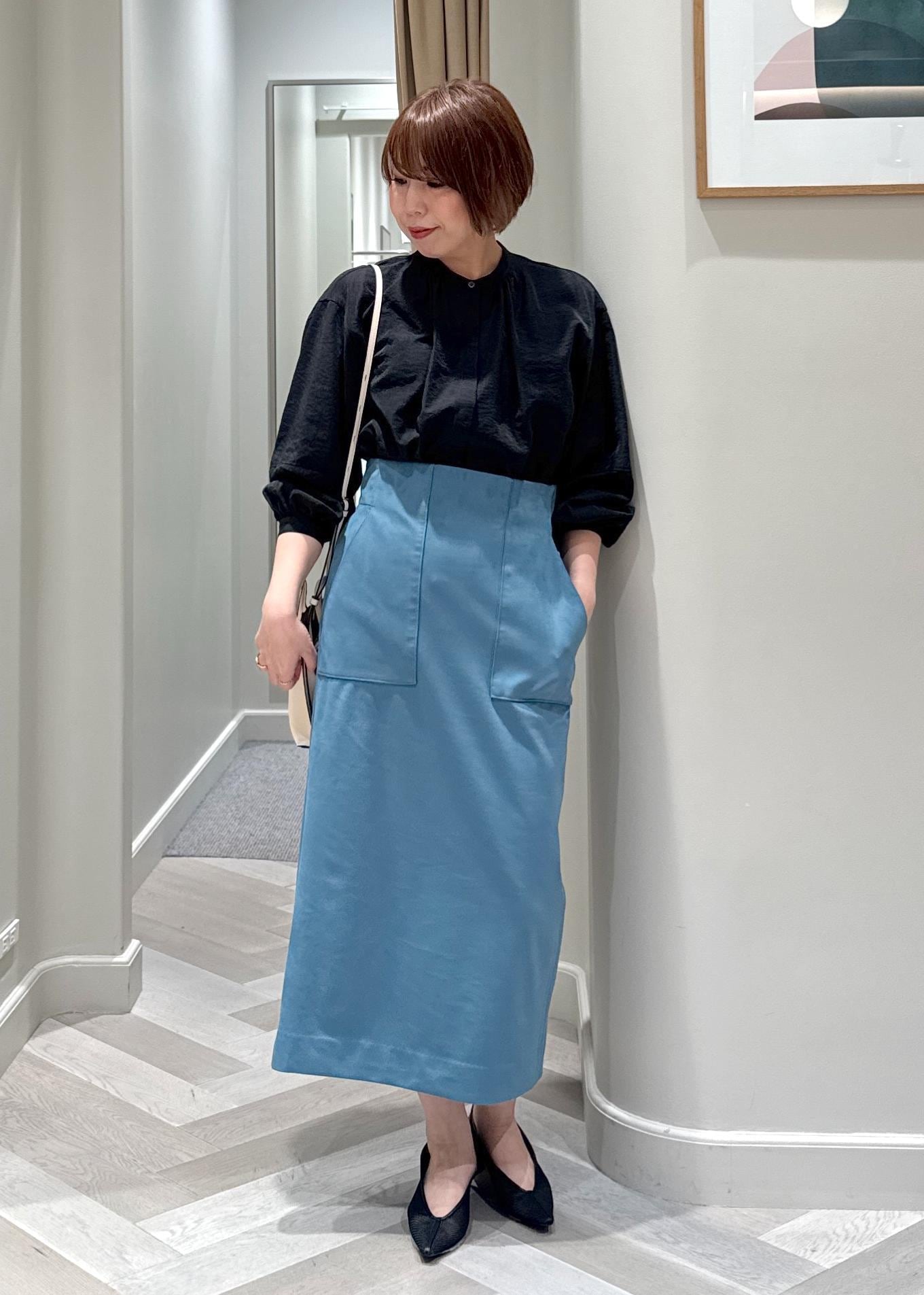 NEW!ROPÉ[美人スカート]スエードポケット付きタイトスカート/イージーケアブルー / 38¥25,300レビュー程よく厚みのある生地感で秋口から春先まで