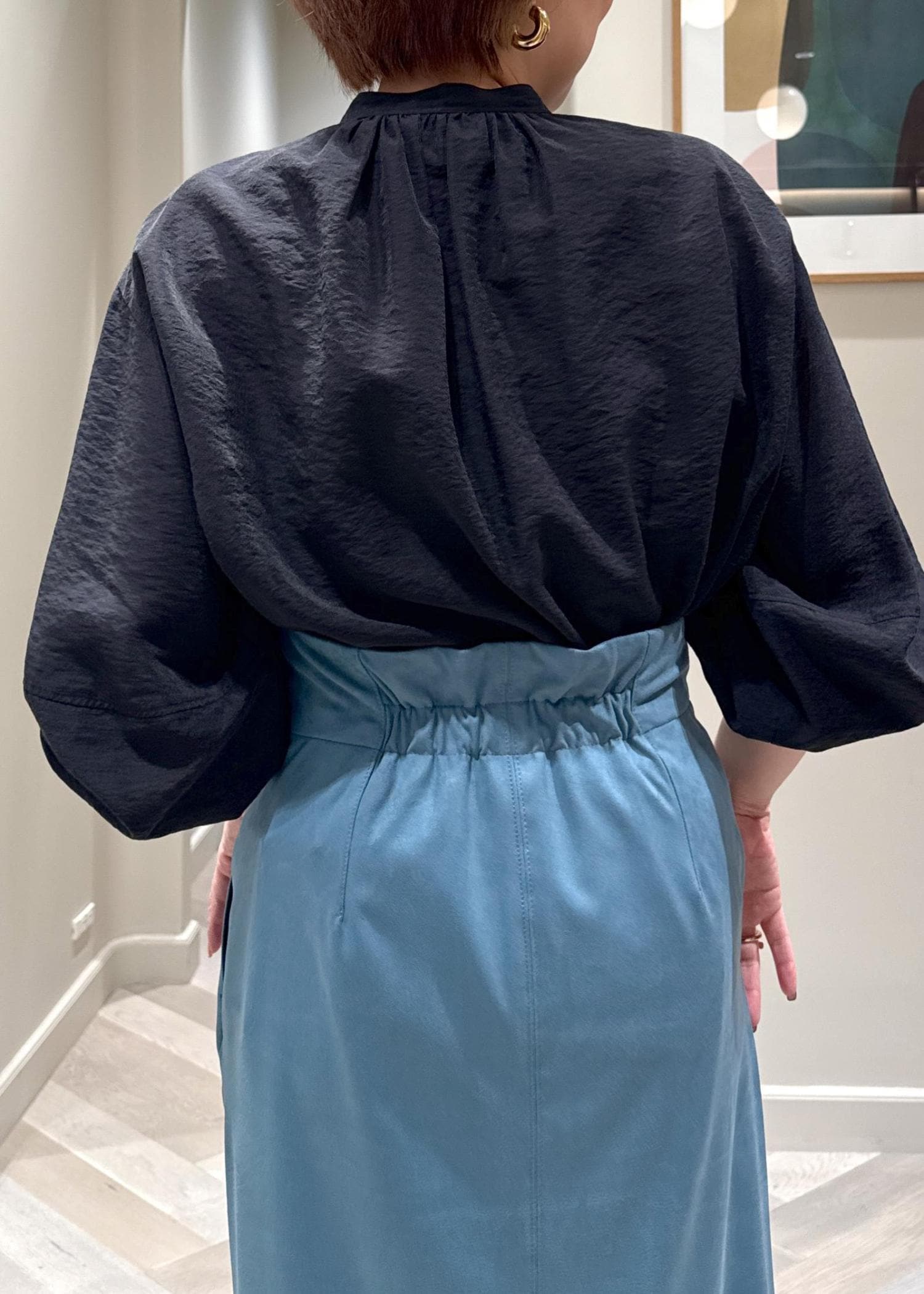 ROPÉキュプラシルクボリュームスリーブブラウス/イージーケアブラック / F¥19,800レビュー程よく厚みがあり1枚でも着やすい生地感。