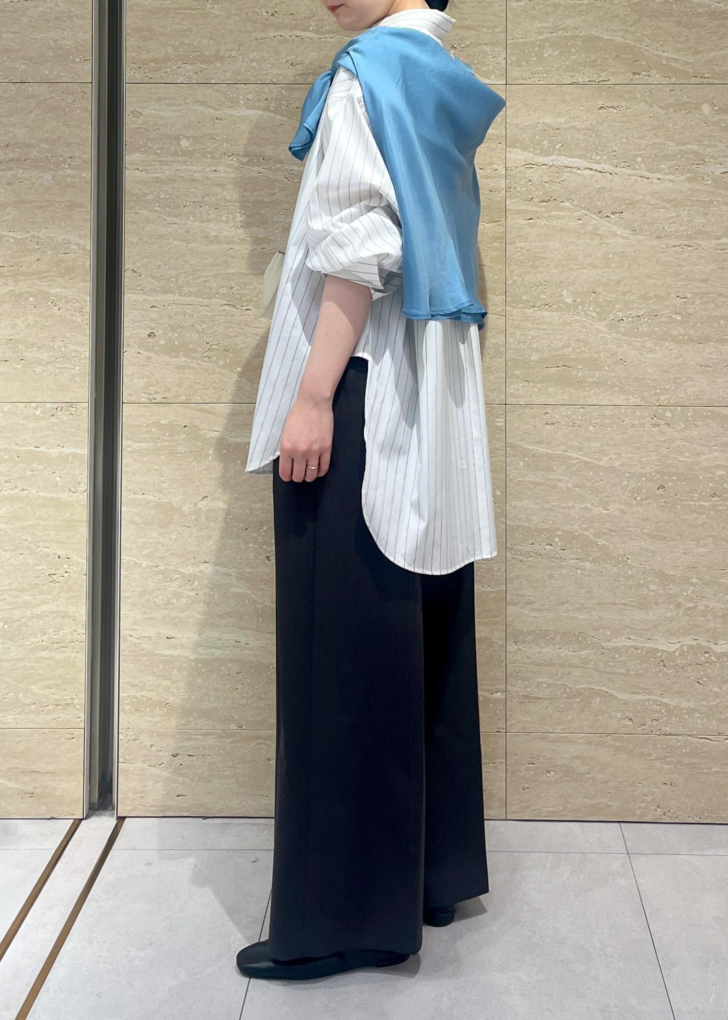 着丈は長めですが肩幅はジャストサイズで、コンパクトな印象。