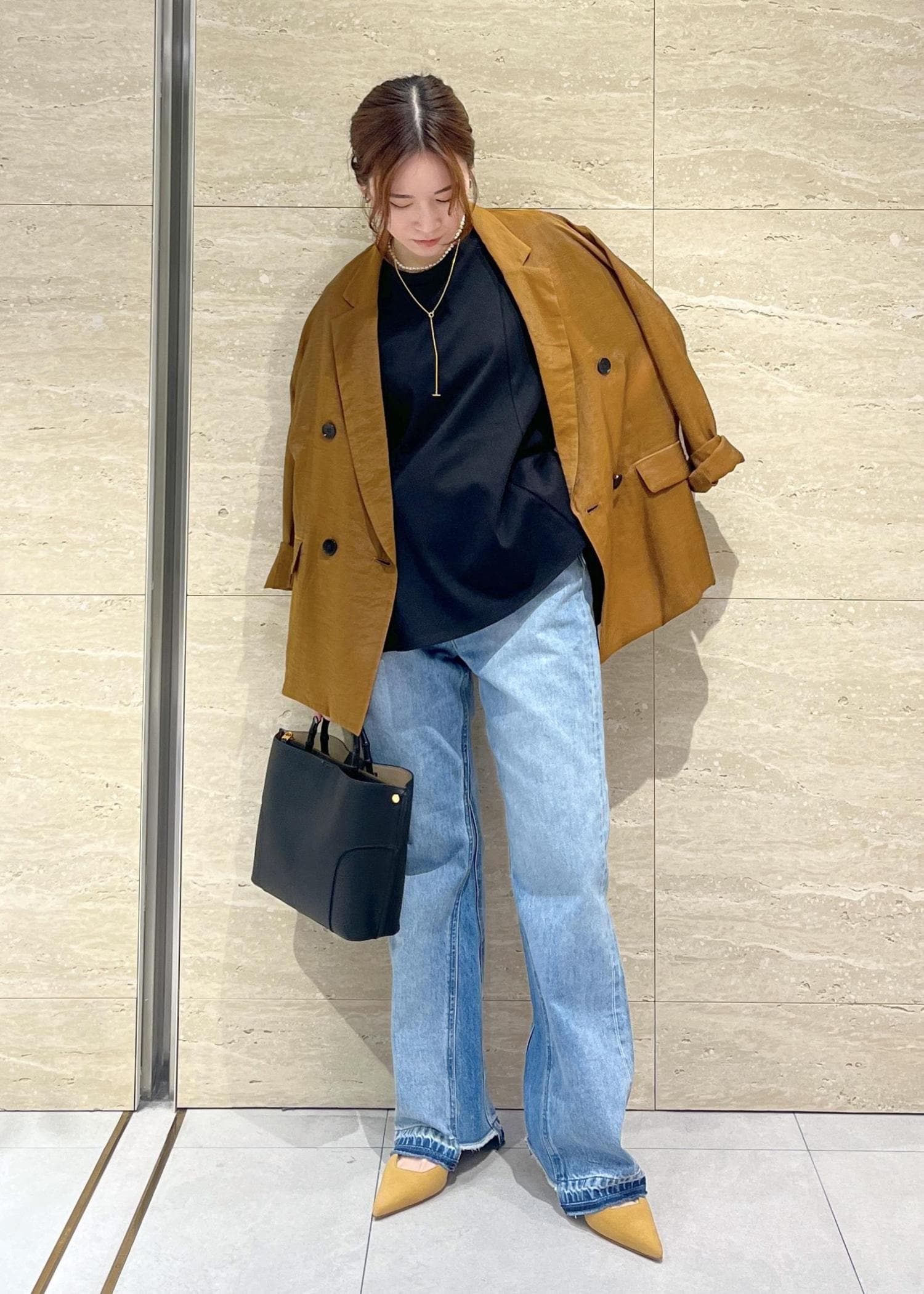 アウトレットSALON adam et ropéシアーリライムテーラードジャケットキャメル / S¥12,760レビューゆったりしたシルエットで、着丈はヒップが隠れる程です。