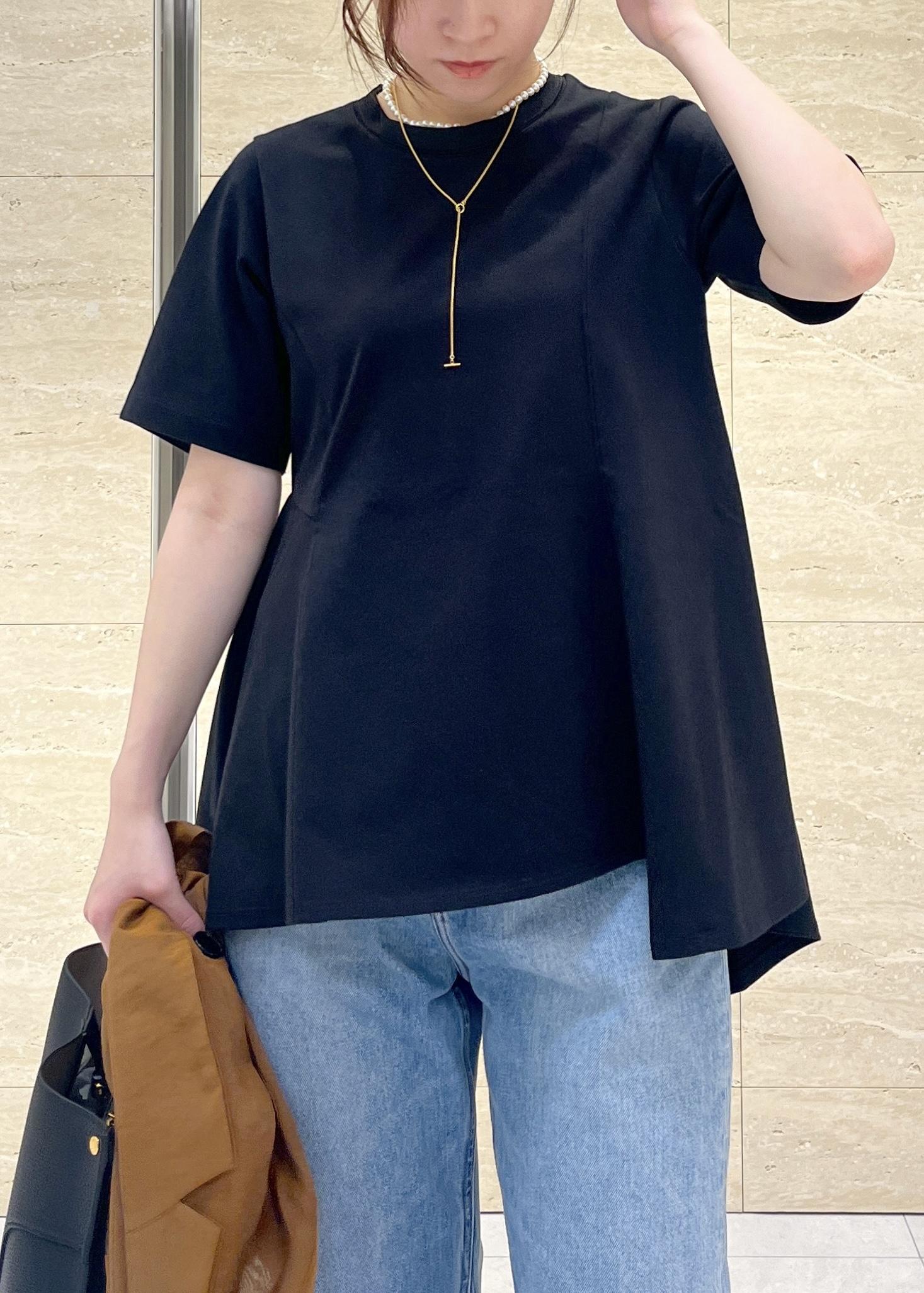 ADAM ET ROPÉ FEMME【サステナブル】アシメフレアプルオーバーブラック / F¥13,200レビュー程よくハリのある生地感です。