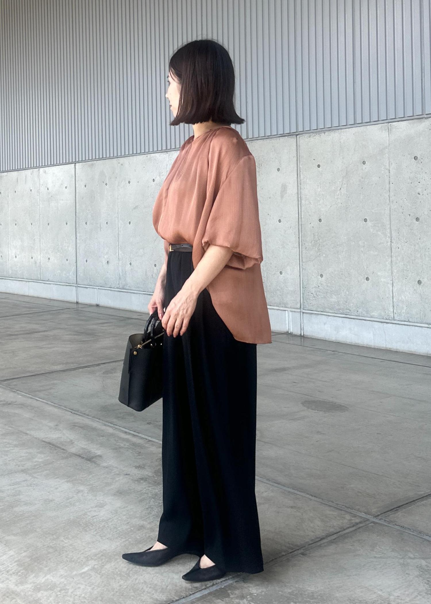 しわになりにくく、とろみのある落ち感が綺麗なパンツです。 -
