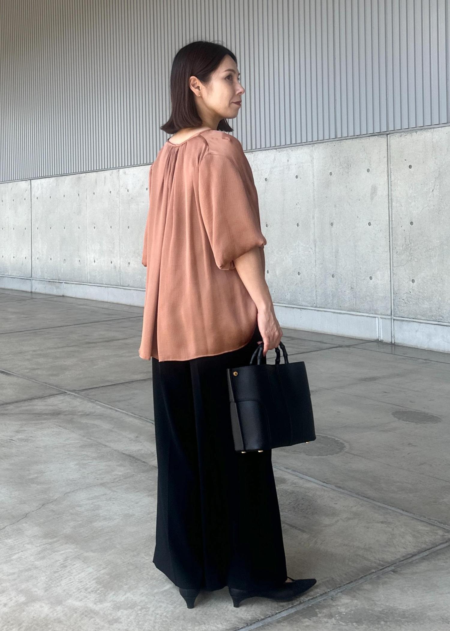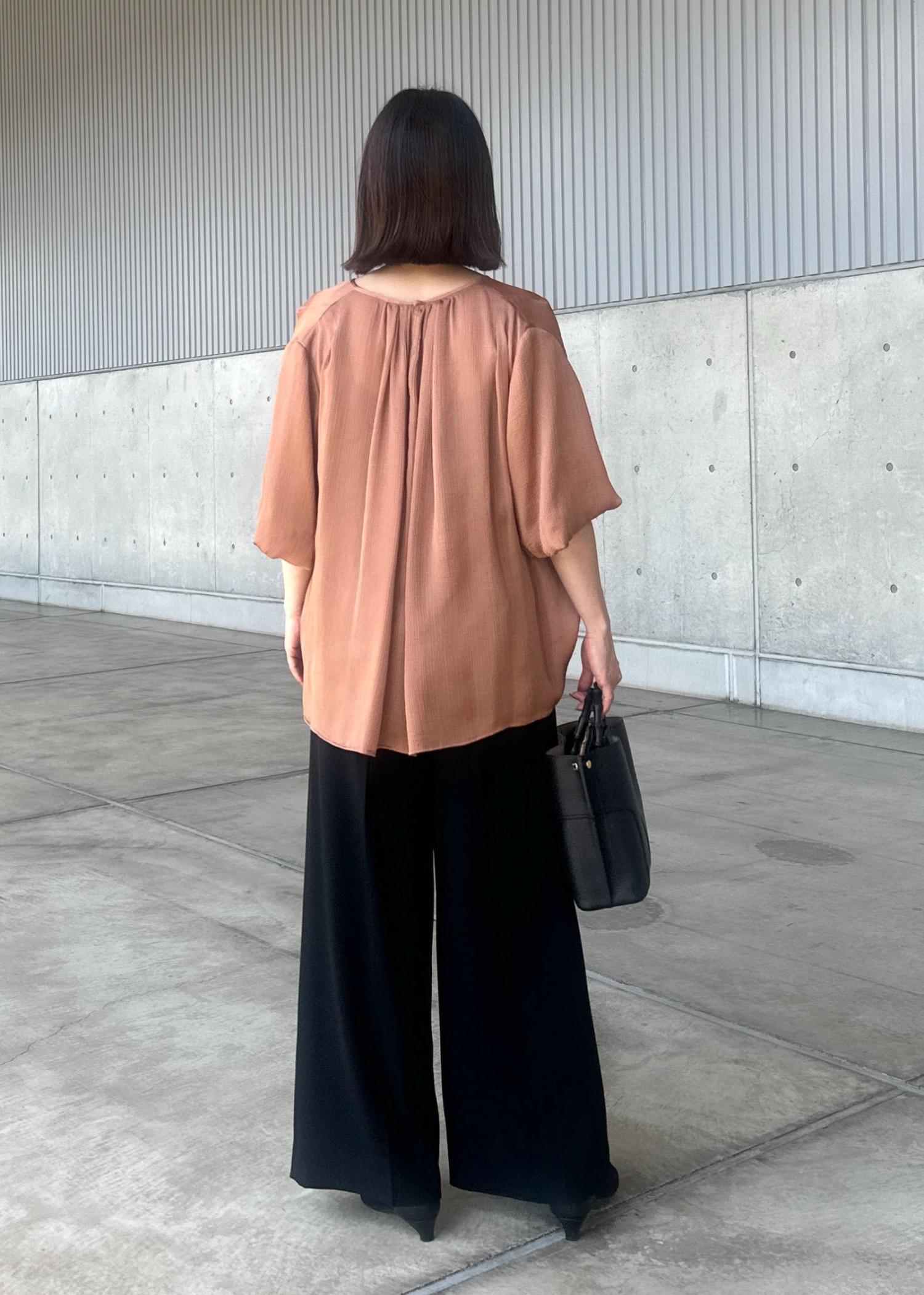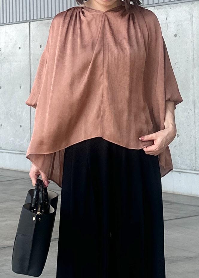 ほんのり透け感とドレープが涼しげなブラウスです。