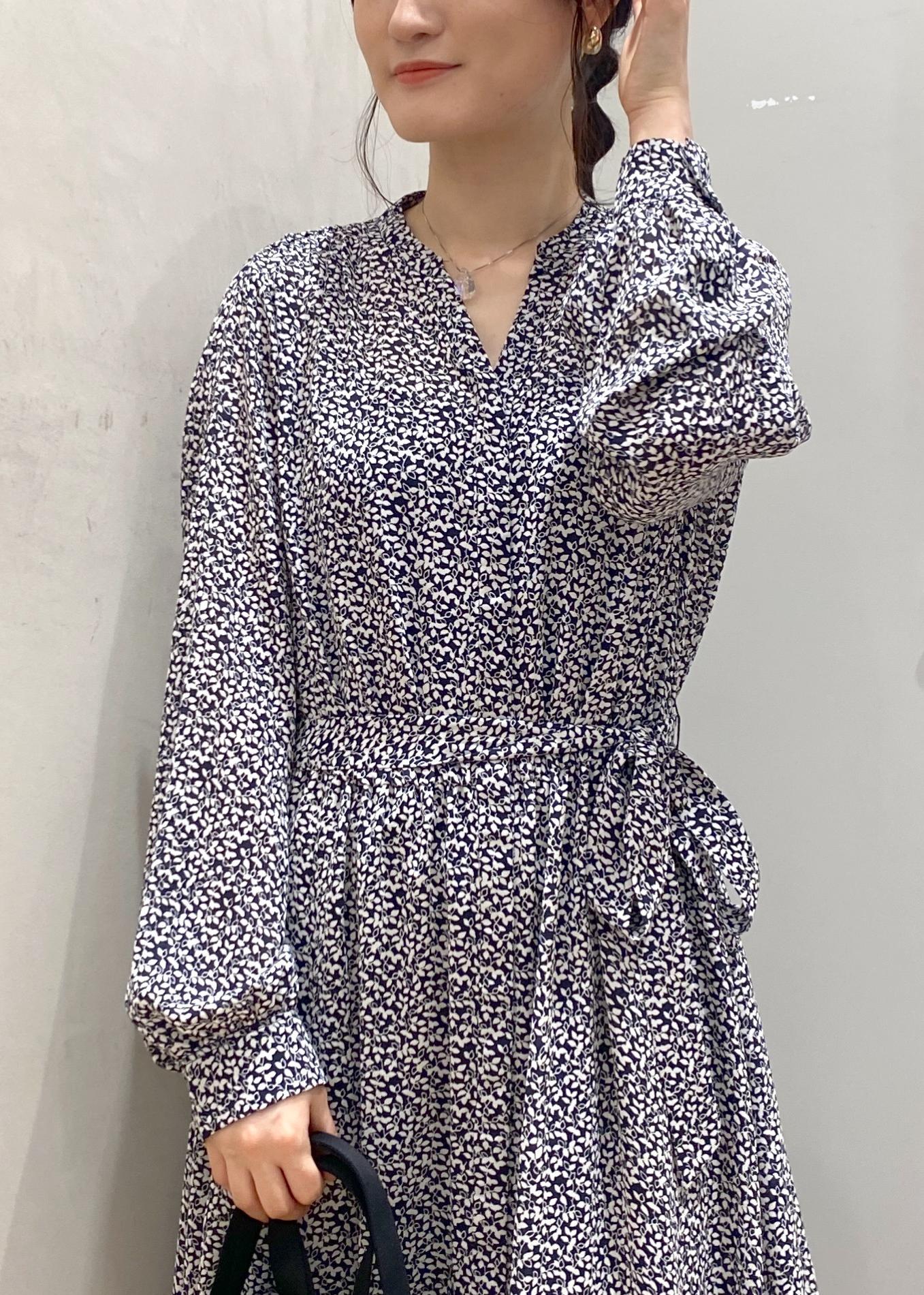 ROPÉ【洗える】ロングスリーブワンピース(ジャガード/リーフプリント)【WEB・一部店舗限定】ネイビー / F¥21,560レビュー160cm Fサイズ着用