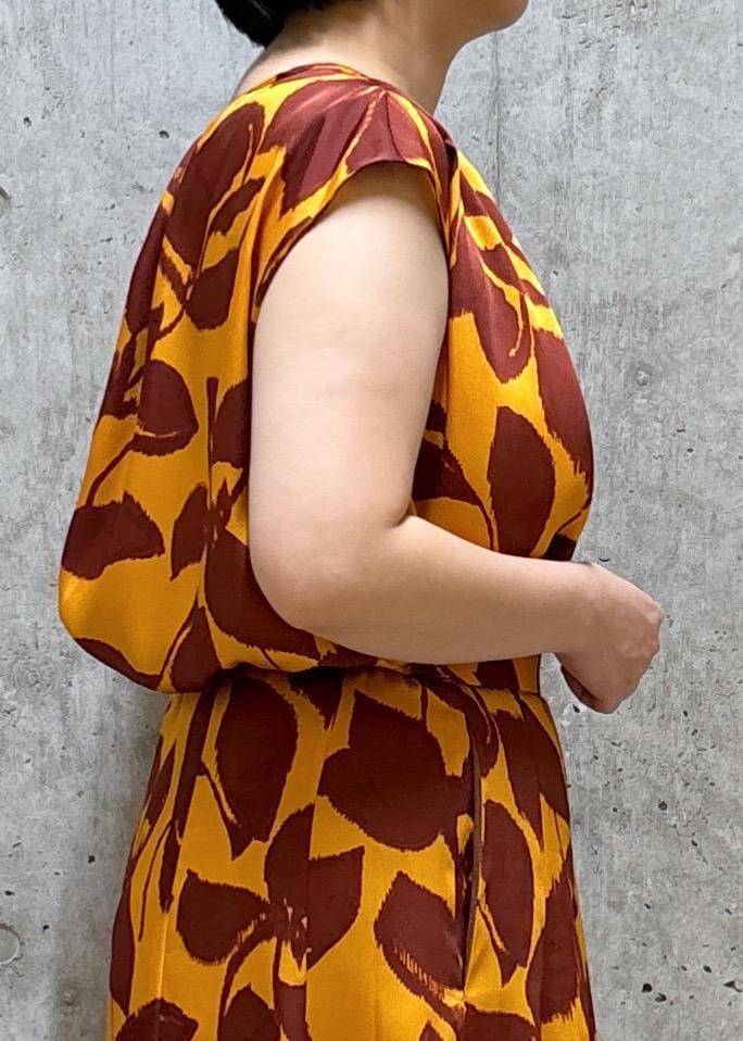 肩にかかる袖丈は二の腕を自然にカバーしてくるので