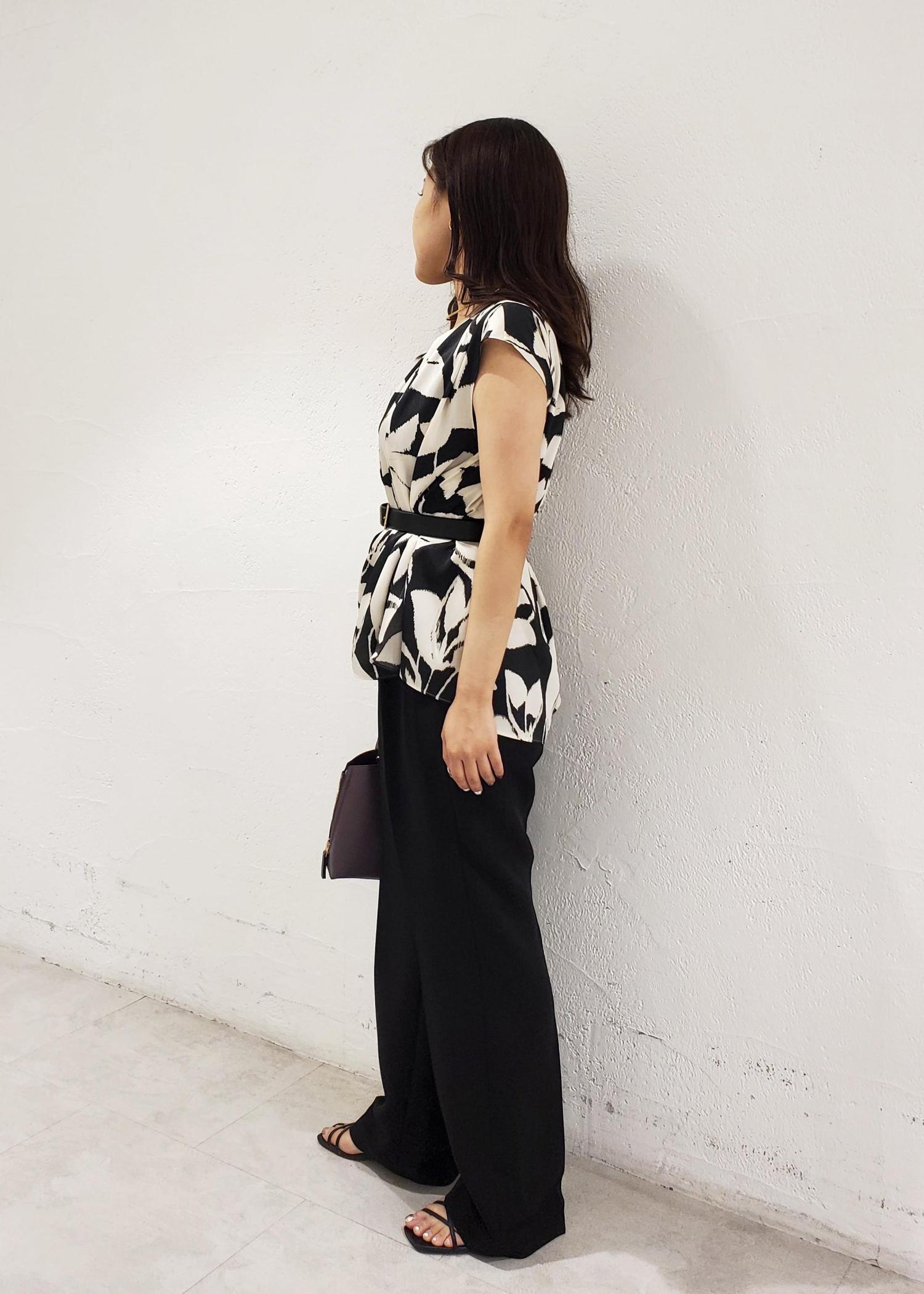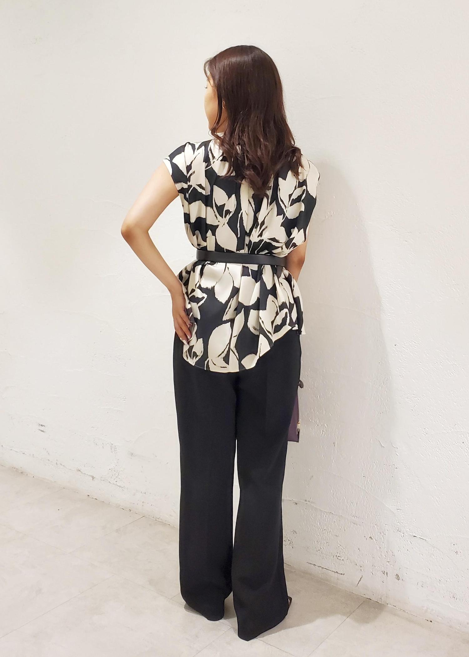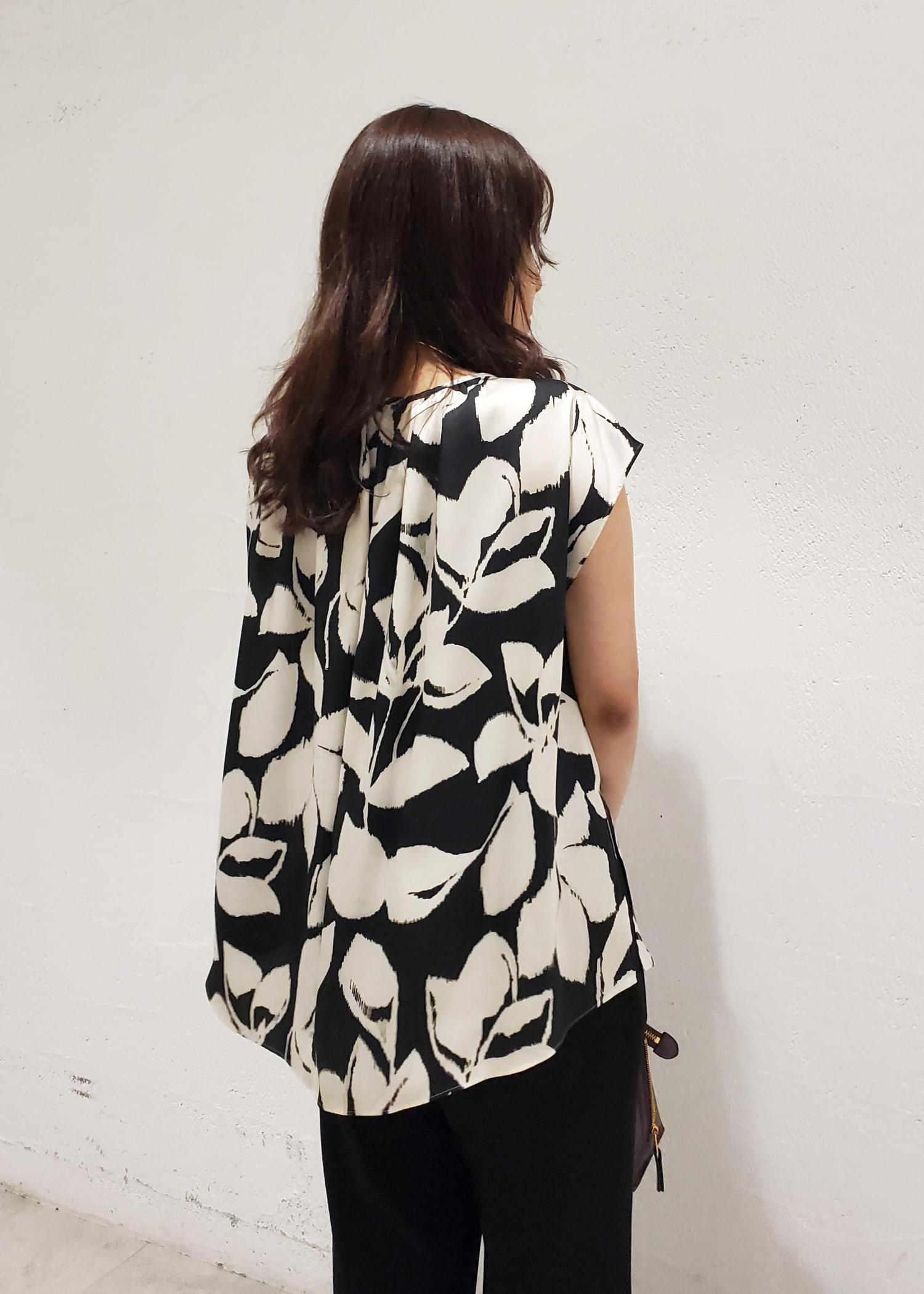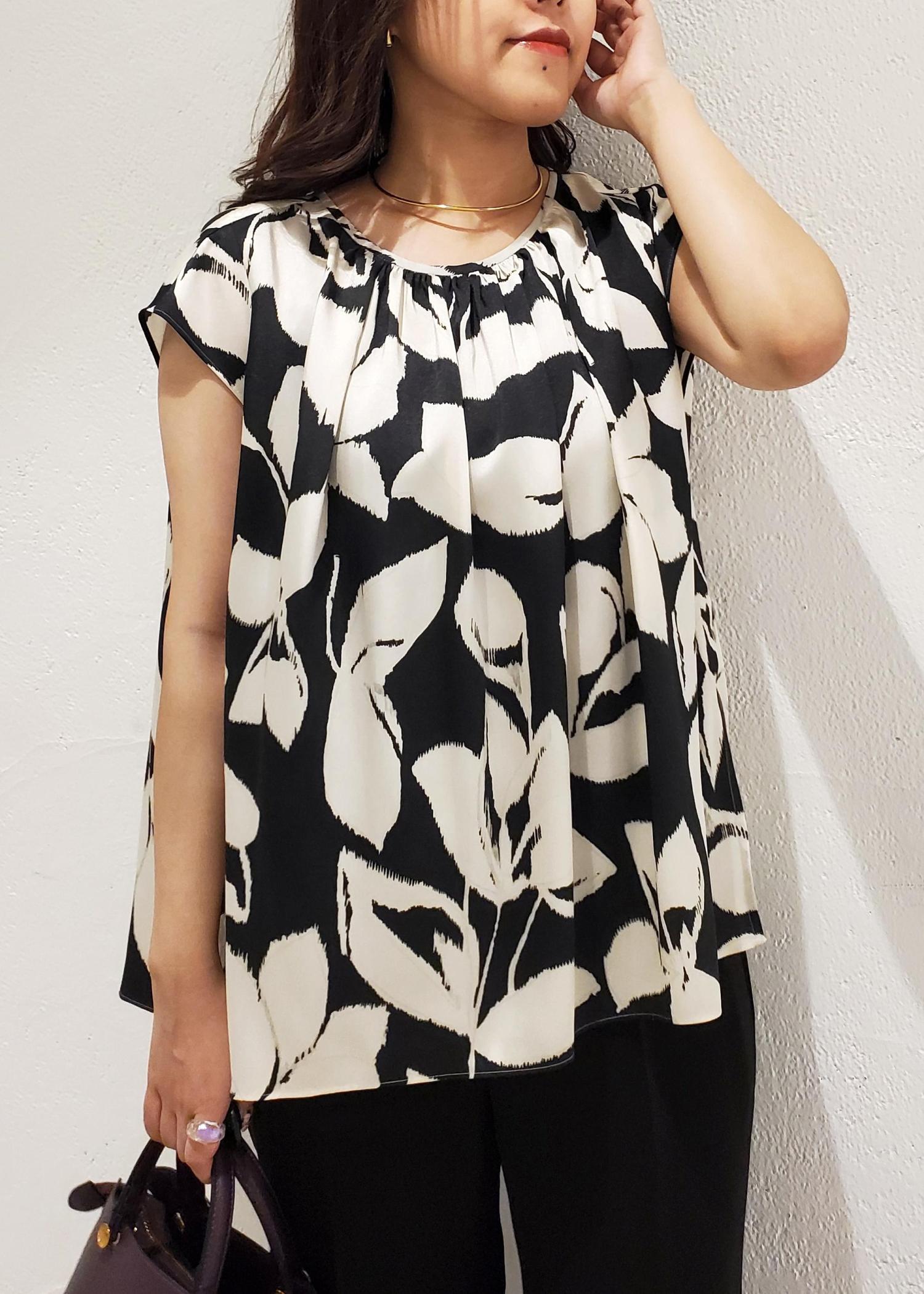 アウトレットROPÉDEVEAUXジオメトリックフラワーブラウスブラック / F¥11,550レビュー上品な光沢感があり、肌に当たるとつるっとしているので肌触り抜群です◎ポリエステル100%でしわになりにくくご自宅で手洗いできるお素材です。