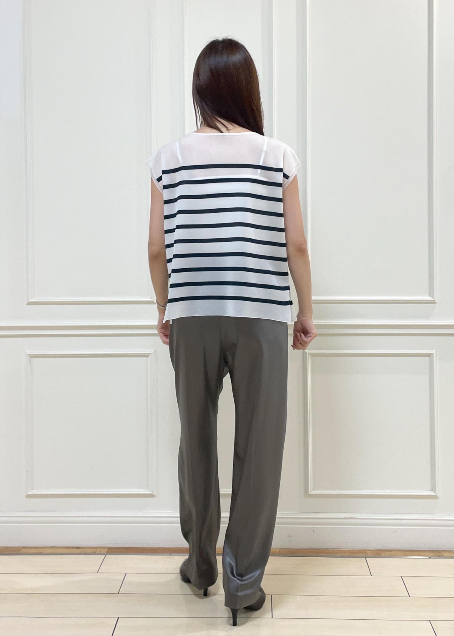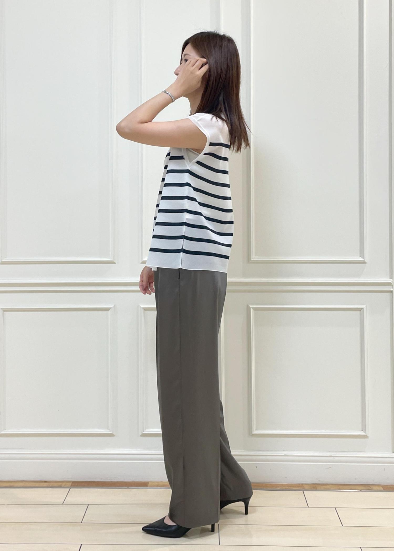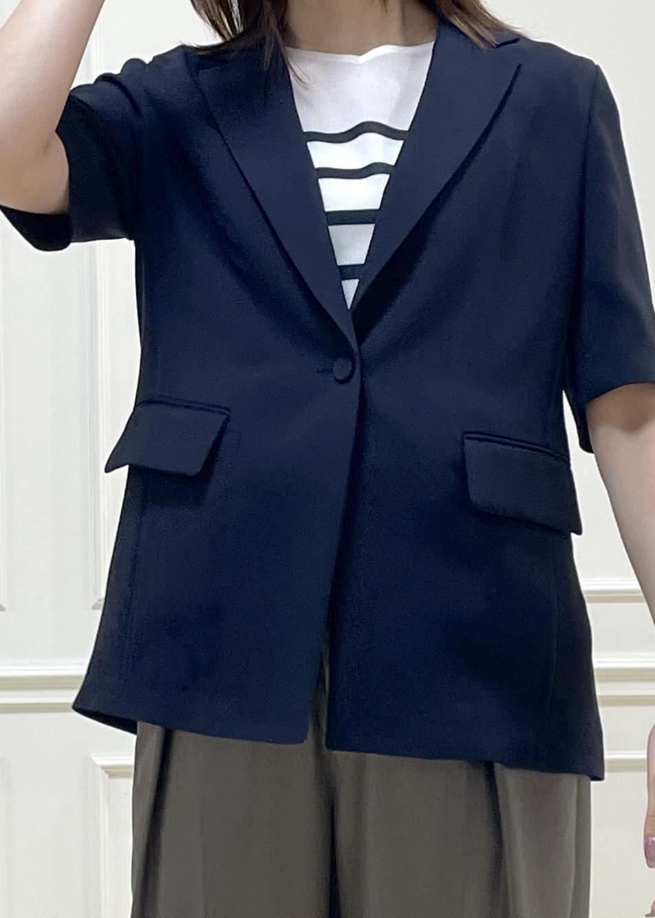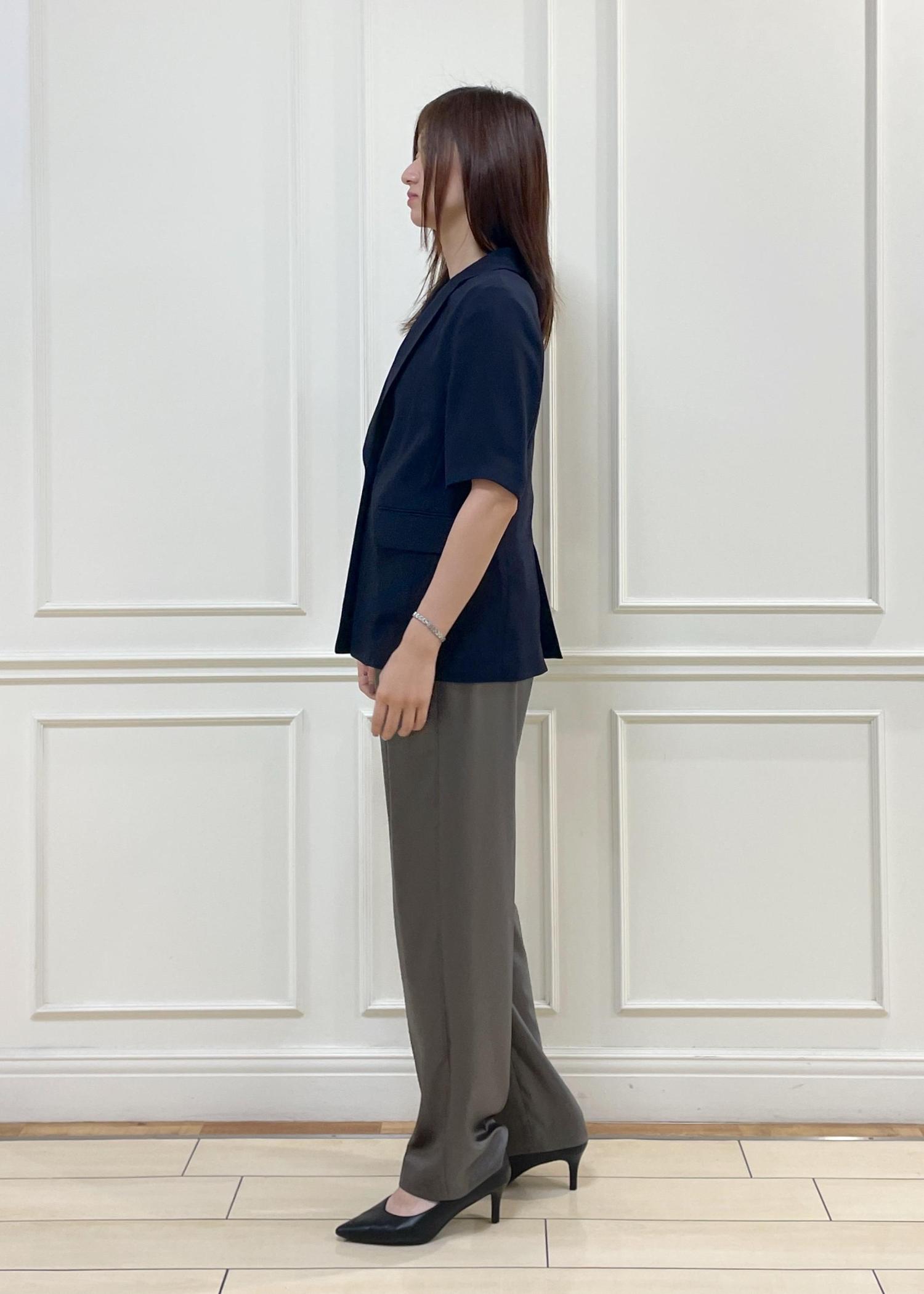 袖丈は肘上辺り、全体的にスッキリとした見え方になります。