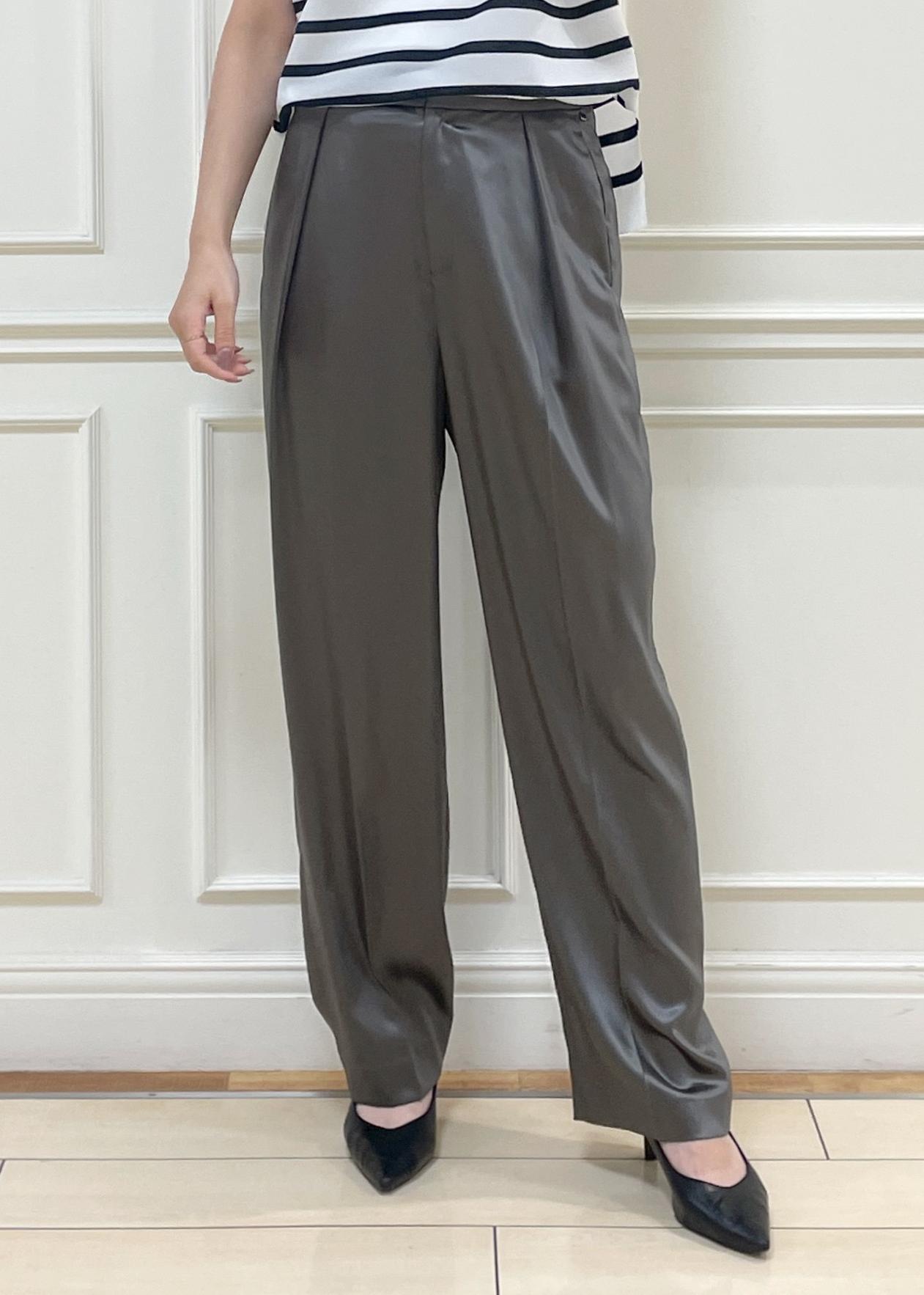 【WEB・一部店舗限定】ブライトハンマーサテンテーパードパンツ/洗える
