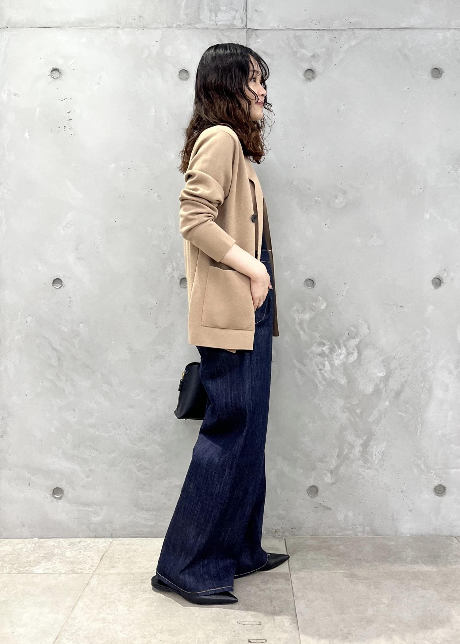 脚のラインを拾わない、太すぎないワイドシルエットで、ストレッチも効いており履きやすいです◎