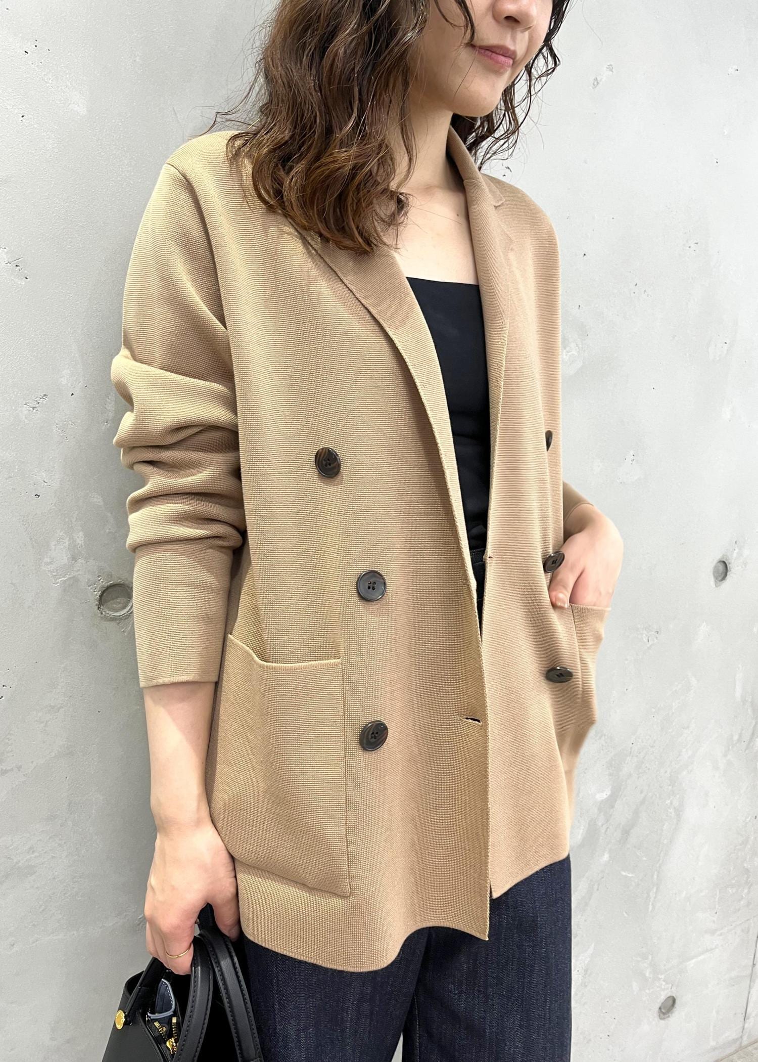 ROPÉミラノリブ ニットダブルジャケット/イージーケアベージュ / 38¥29,260レビュー38サイズを着用しています。
