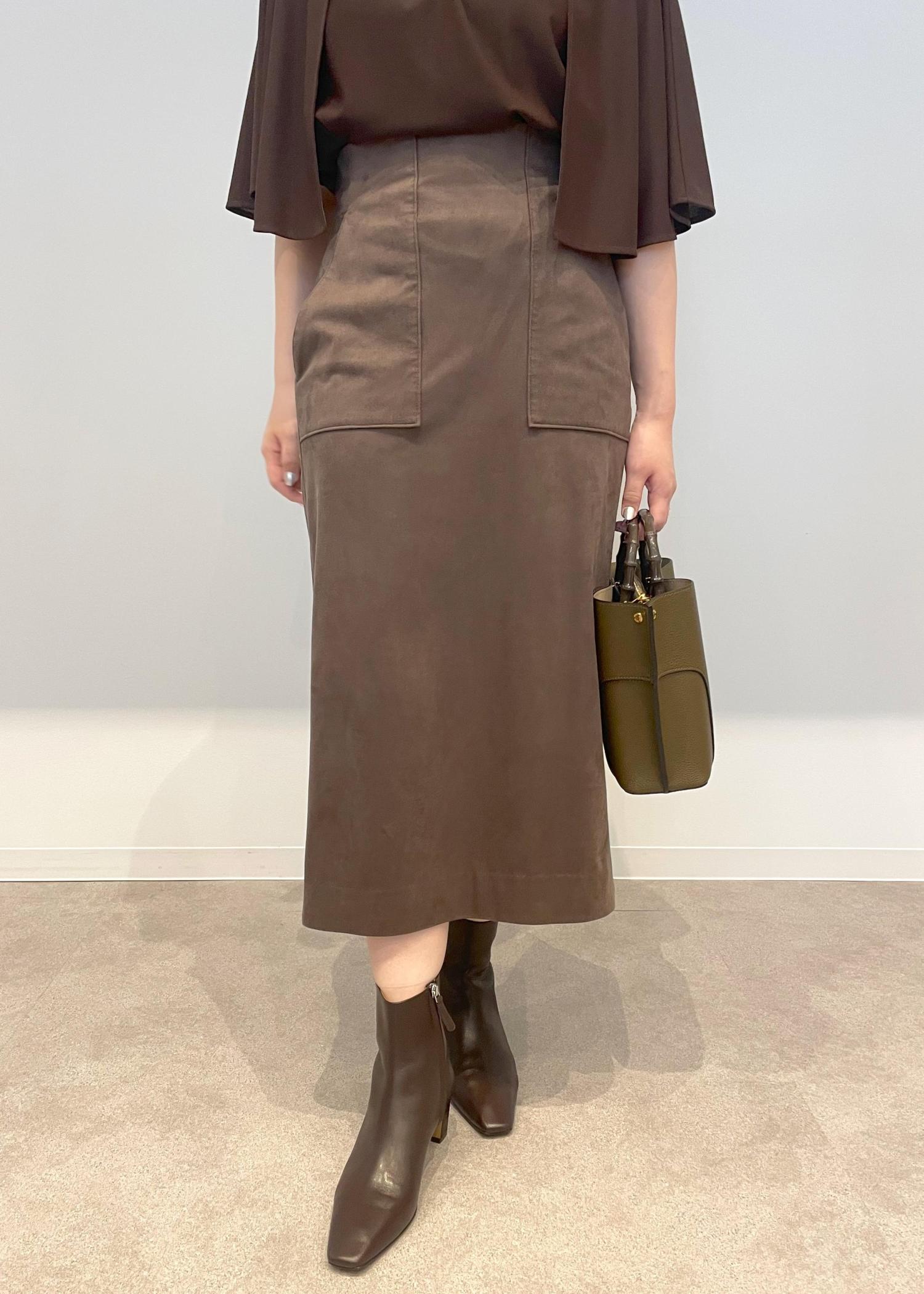 ROPÉ[美人スカート]スエードポケット付きタイトスカート/イージーケアダークブラウン / 38¥25,300レビュー裏地もしっかり付いているので透け感はあんまりないです。