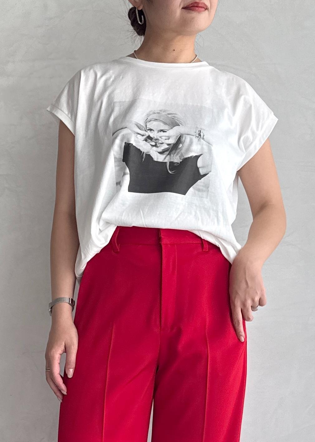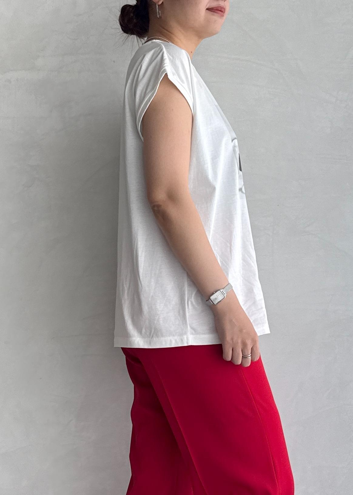 ROPÉ【Brigitte Bardot×ROPE'・コラボ】プリントアームレットT-shirt【洗える・洗濯耐久性・接触冷感】ホワイト系 / F¥12,100レビュー160センチ 通常38サイズ
