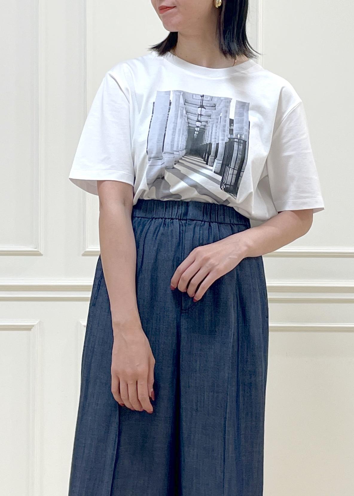 ROPÉプリントTシャツ/イージーケアホワイト系 / F¥8,800レビュー体のラインを拾いにくい、ほどよくゆとりのあるシルエットが特徴のTシャツ。