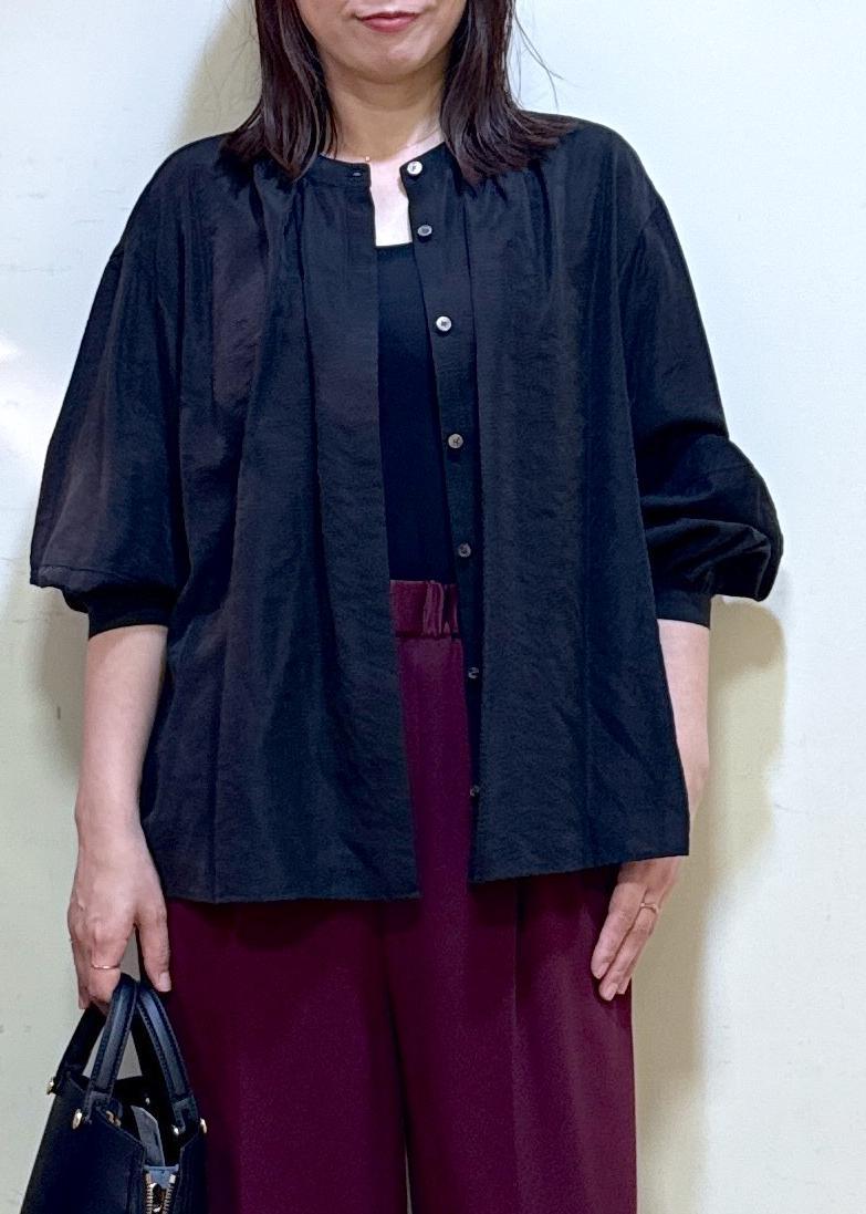 ROPÉキュプラシルクボリュームスリーブブラウス/イージーケアブラック / F¥19,800レビュー163センチ Fサイズ着用